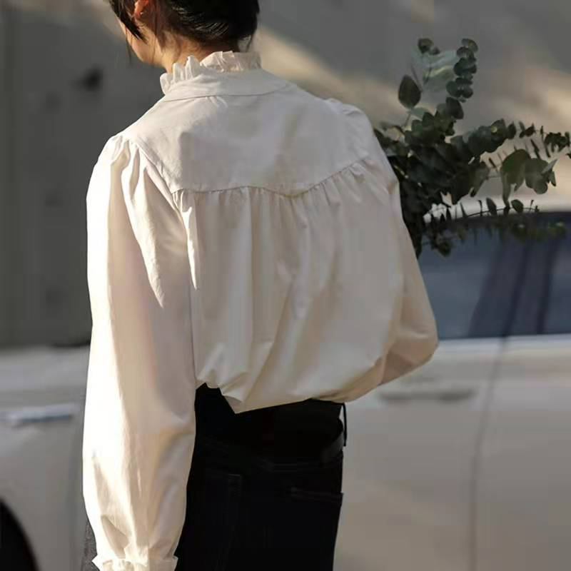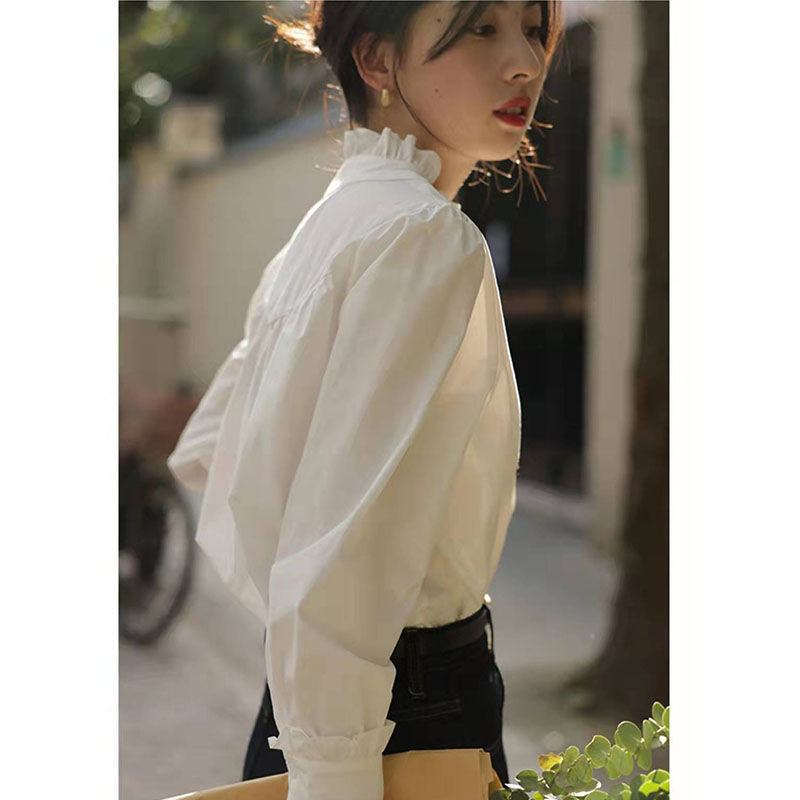 프랑스 Lic 칼라 긴팔 셔츠 탑 여성 봄 2025 새로운 스타일 작은 내면베이스 스타일 흰색 셔츠