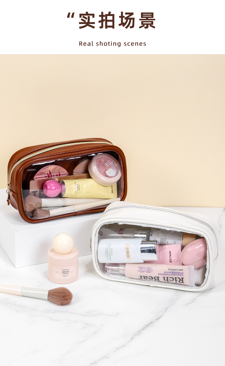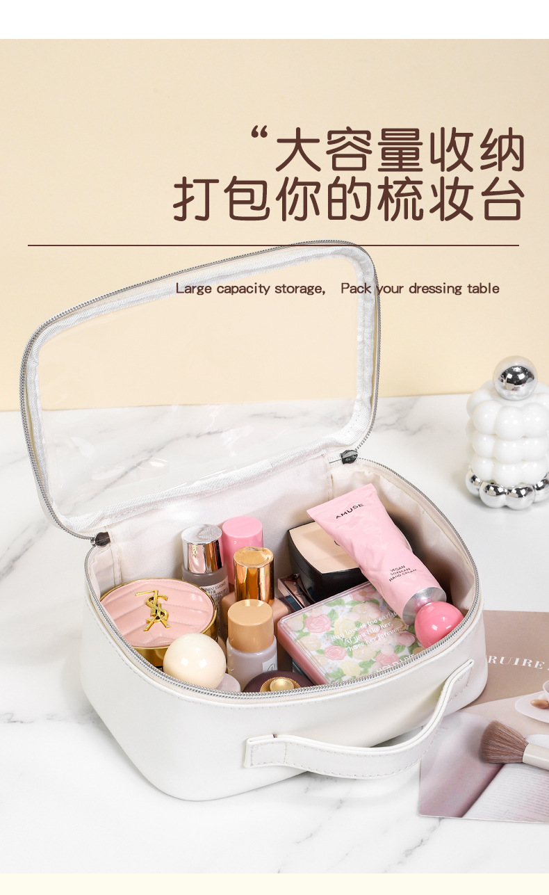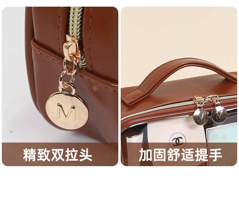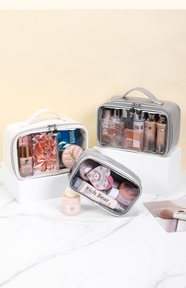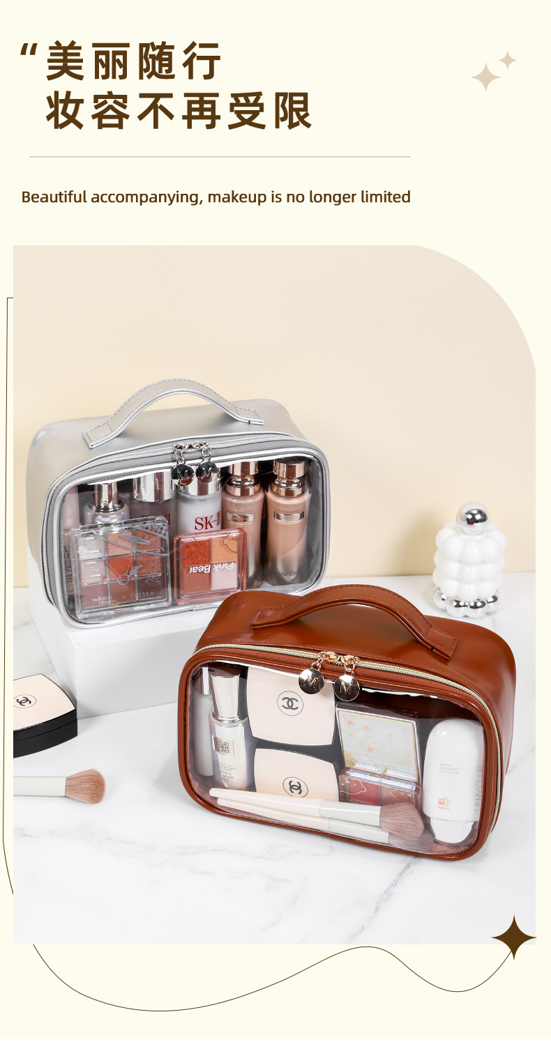 새로운 메이크업 브러쉬 세면도구 가방, 고투명 PU 소재, 고급 대용량 수납, 휴대용 방수 및 방진 메이크업 가방