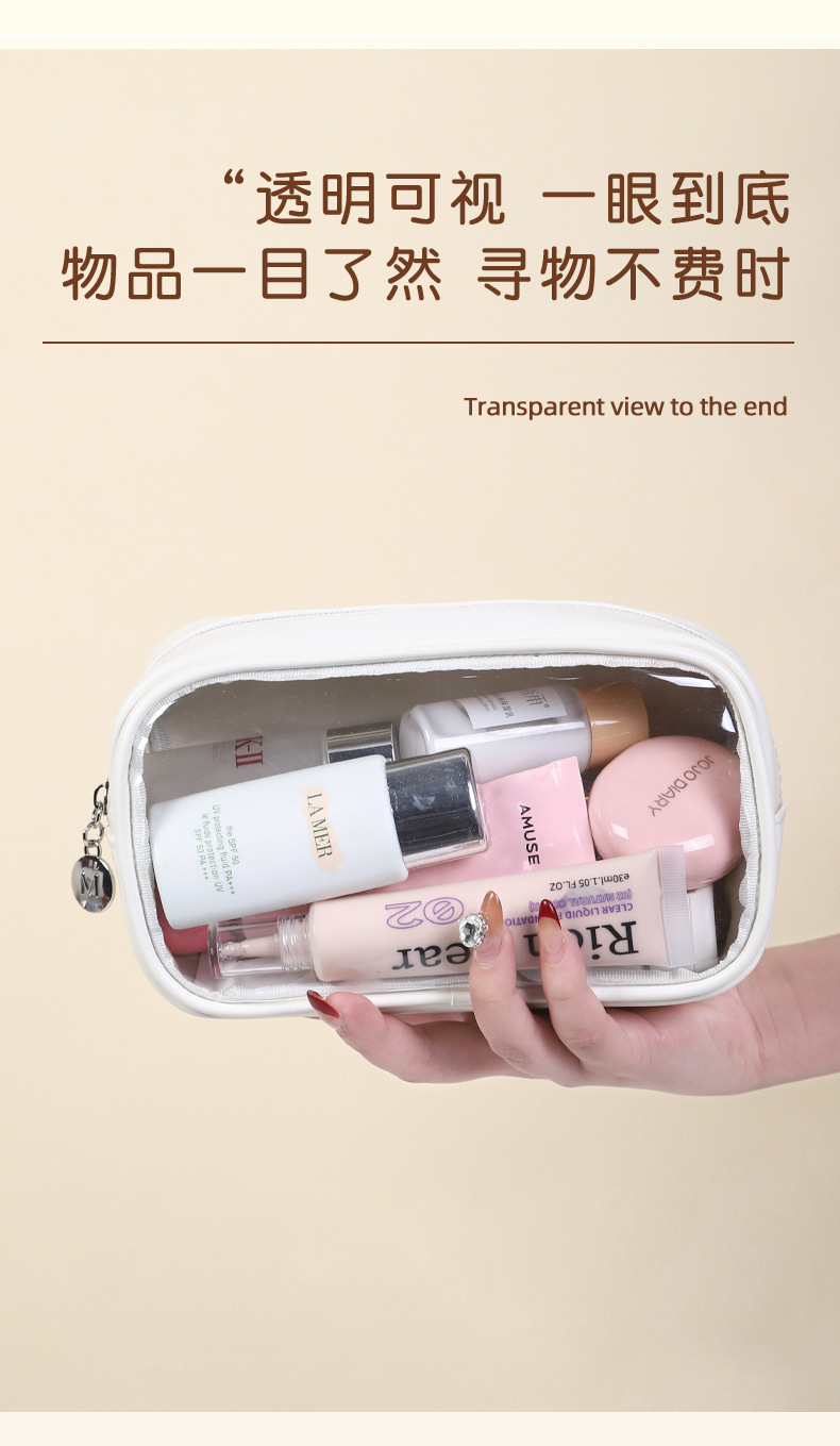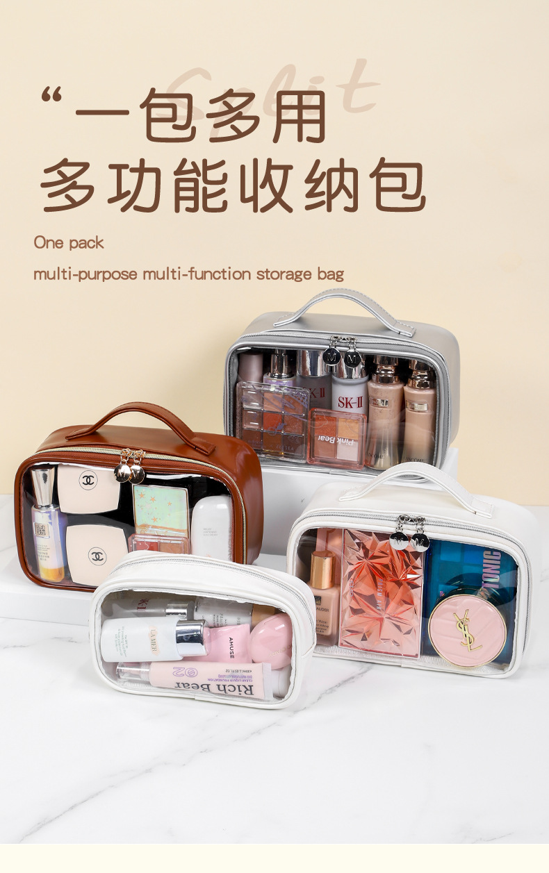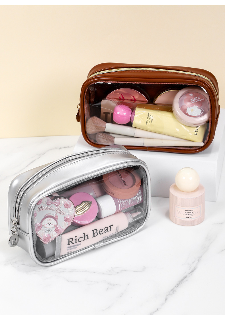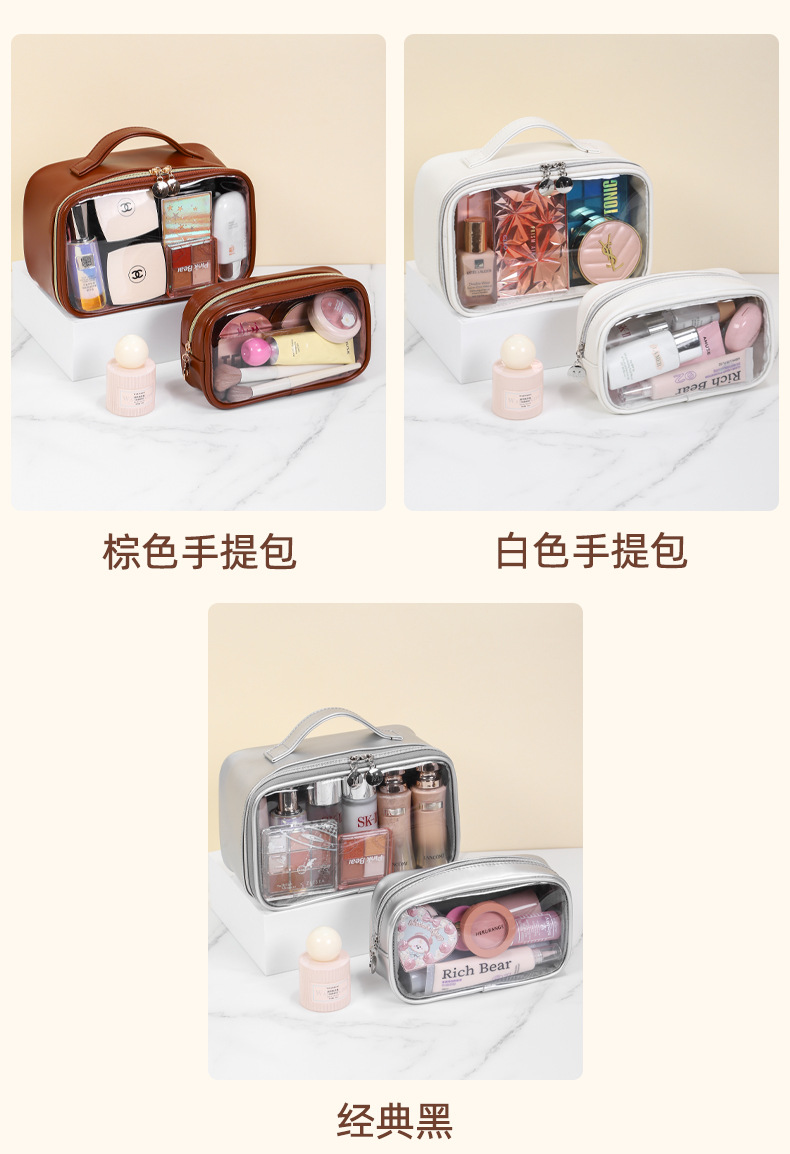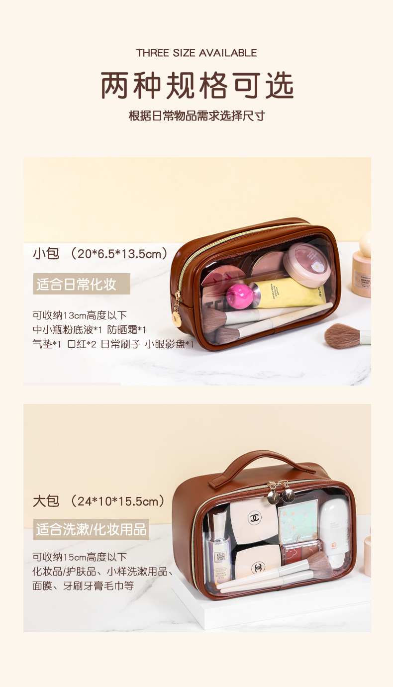 새로운 메이크업 브러쉬 세면도구 가방, 고투명 PU 소재, 고급 대용량 수납, 휴대용 방수 및 방진 메이크업 가방