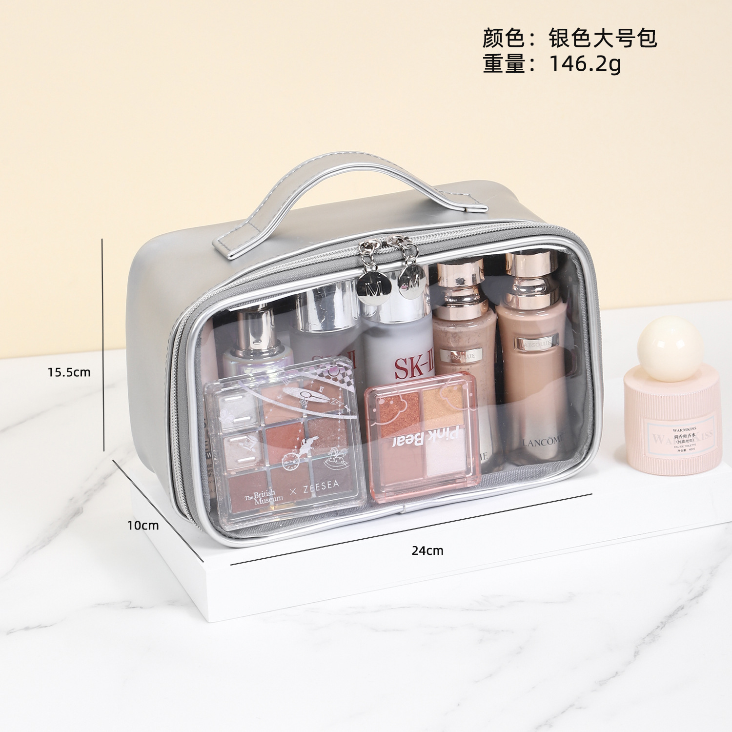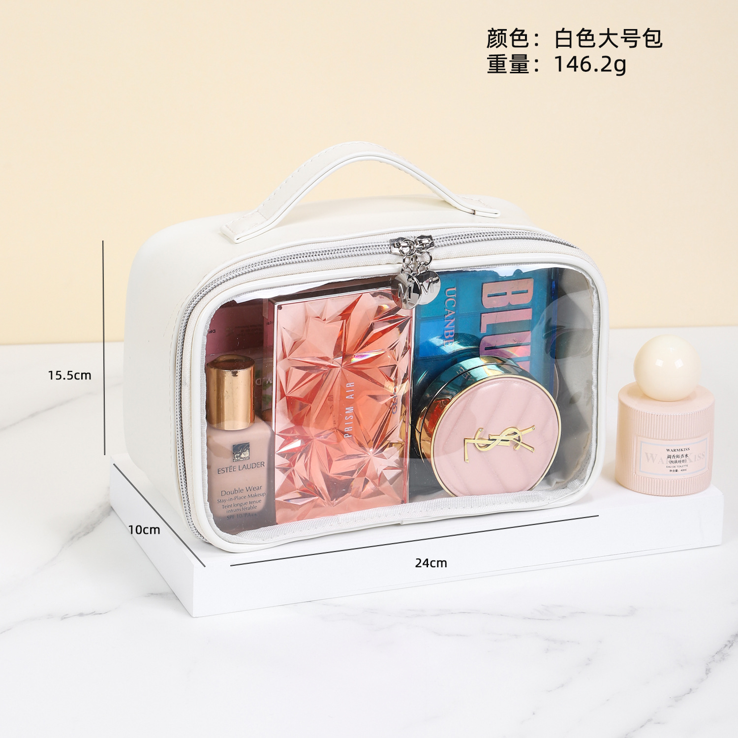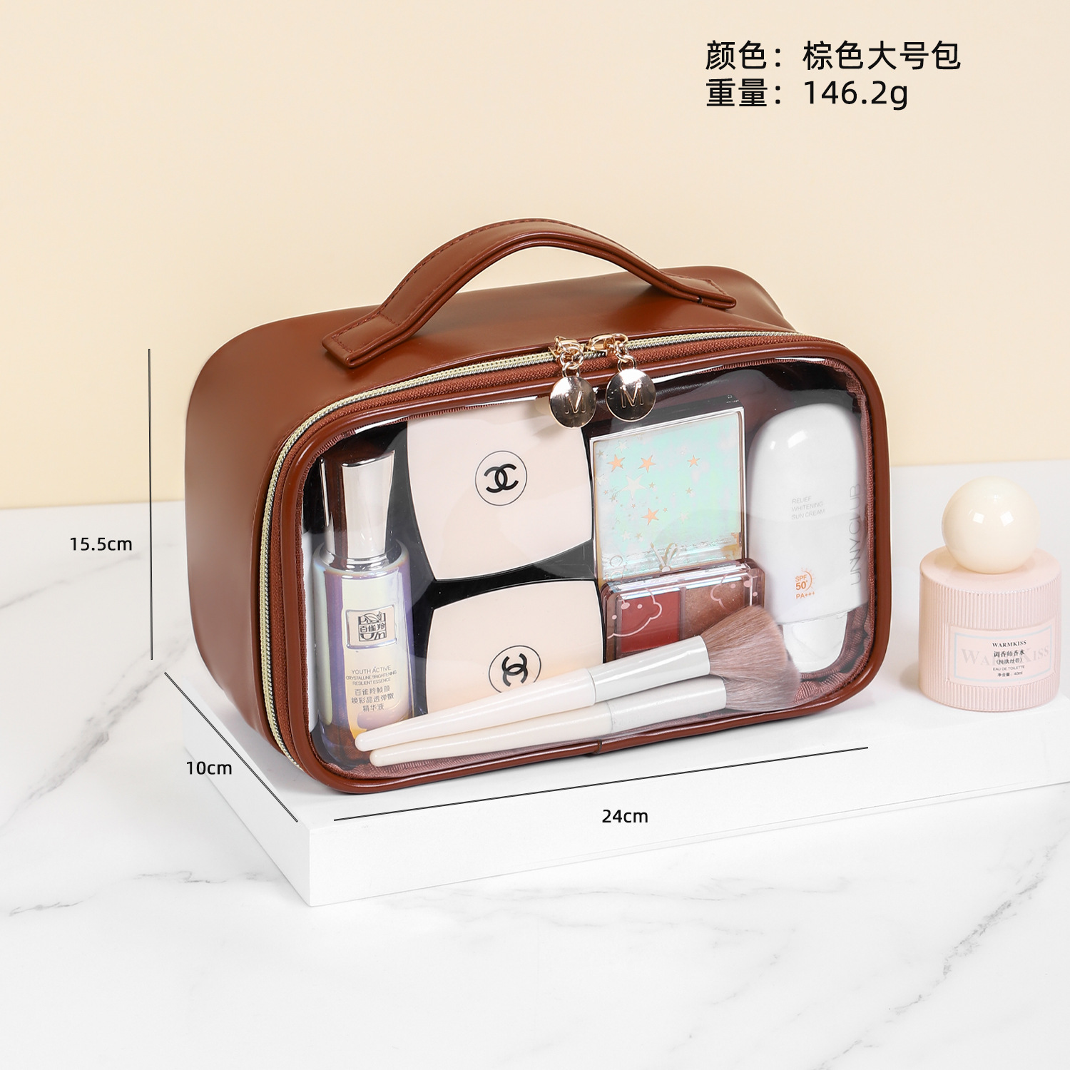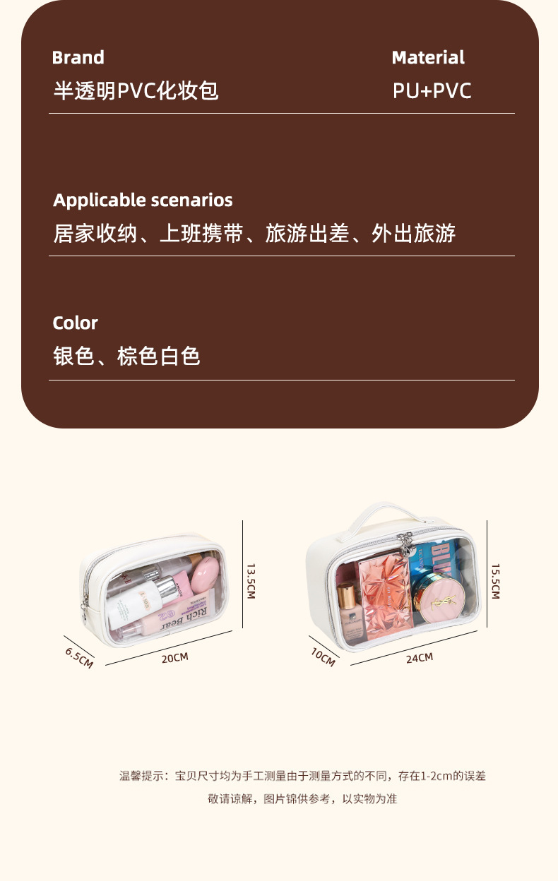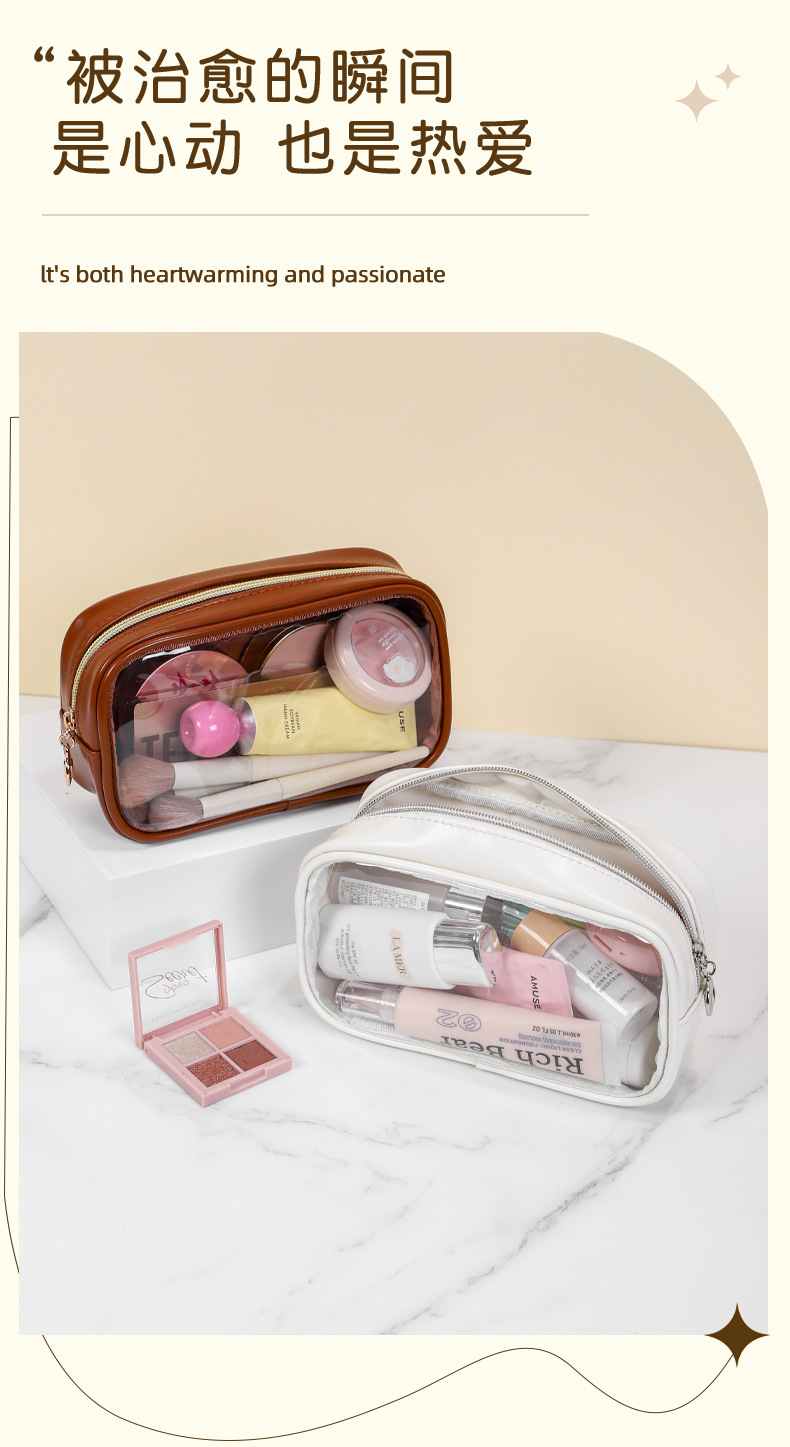 새로운 메이크업 브러쉬 세면도구 가방, 고투명 PU 소재, 고급 대용량 수납, 휴대용 방수 및 방진 메이크업 가방