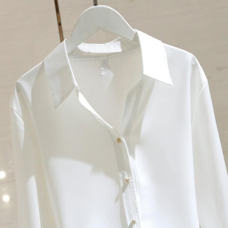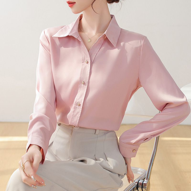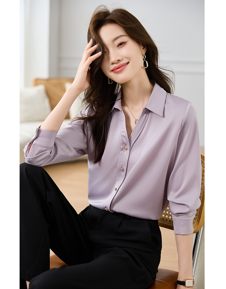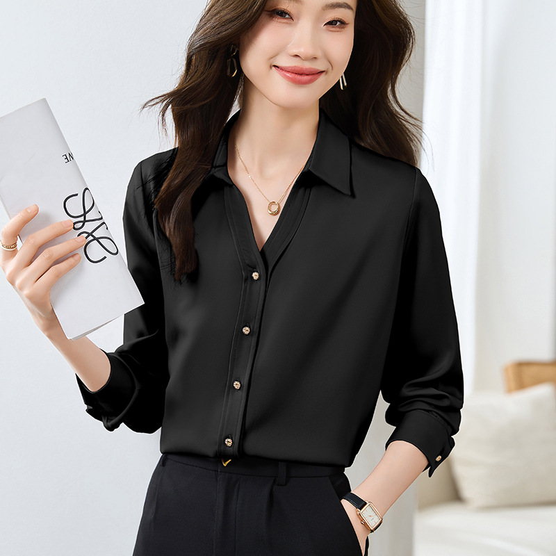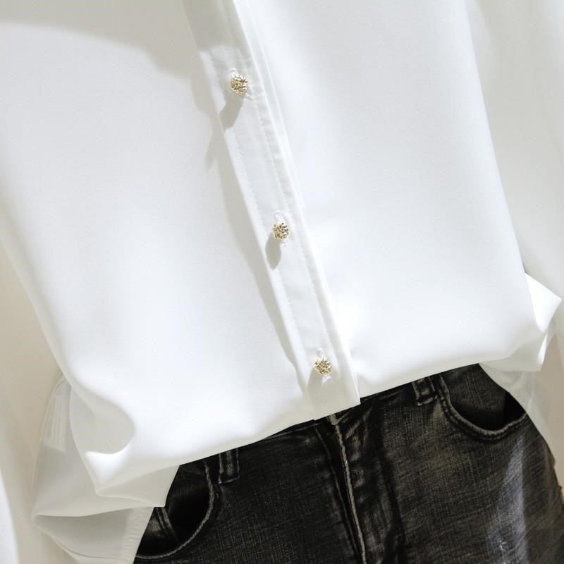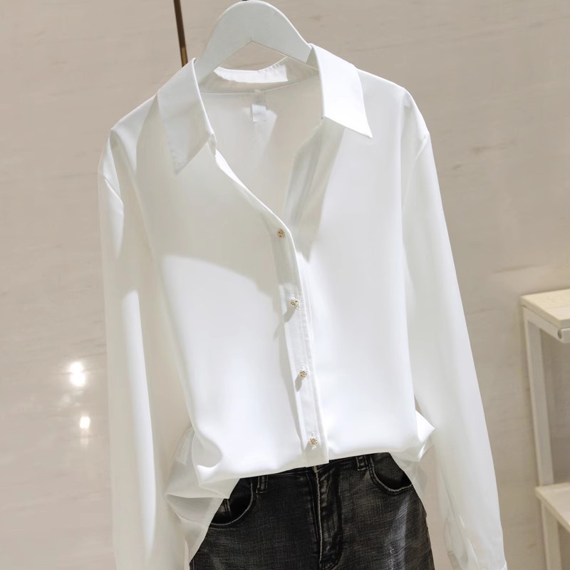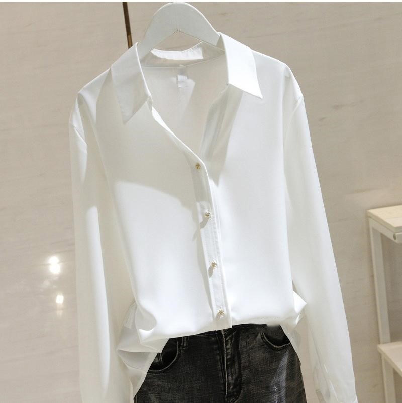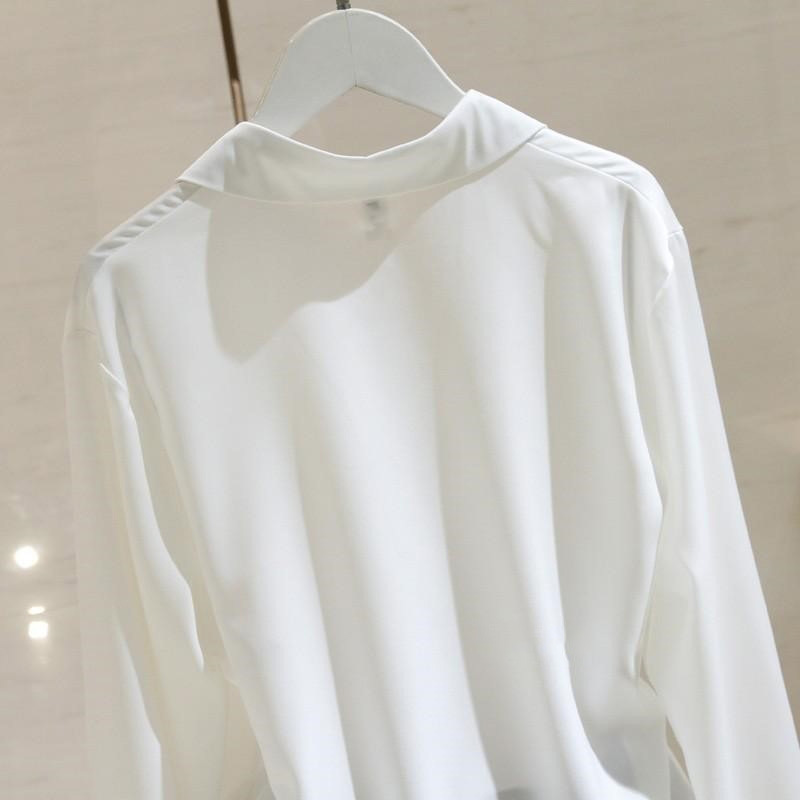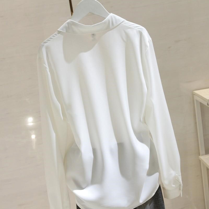 넷맵 여성 의류 브랜드 할인 인출 캐비닛 디자인 V 칼라 드레이프 화이트 새틴 긴팔 셔츠 여성스토어 가기