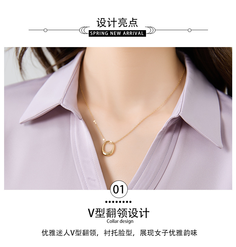 넷맵 여성 의류 브랜드 할인 인출 캐비닛 디자인 V 칼라 드레이프 화이트 새틴 긴팔 셔츠 여성