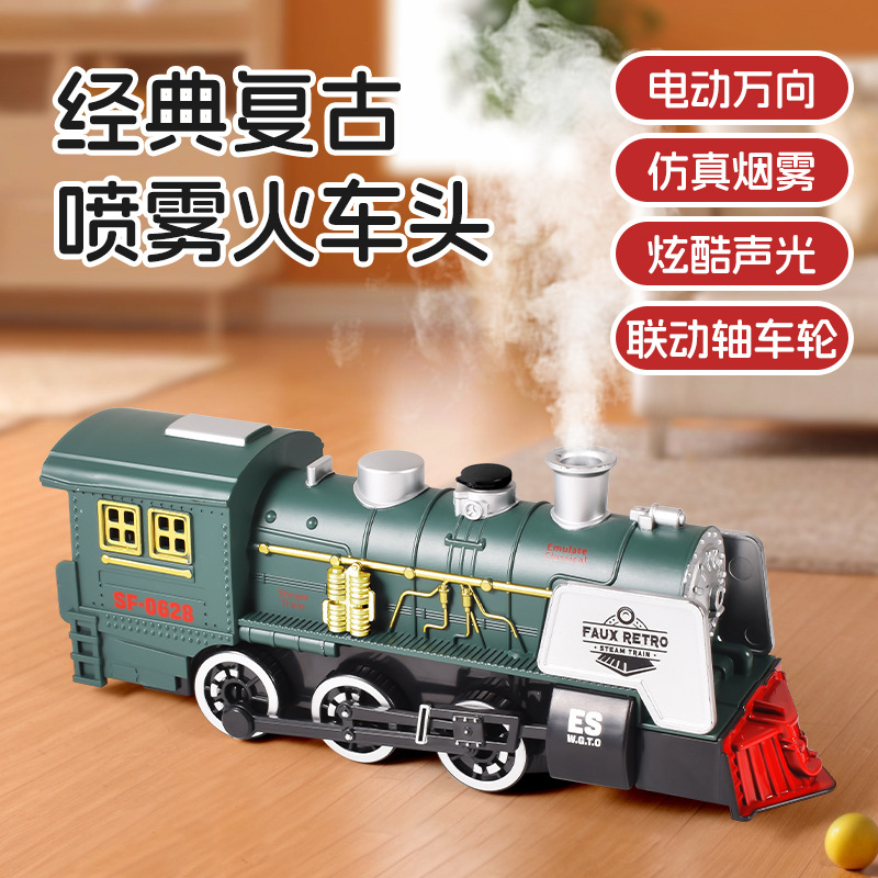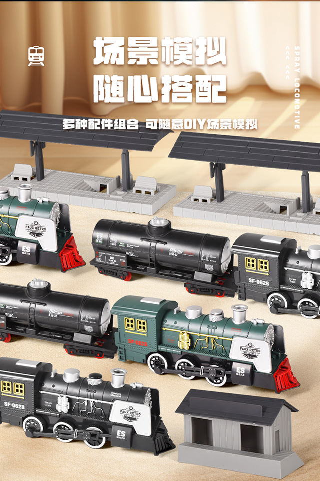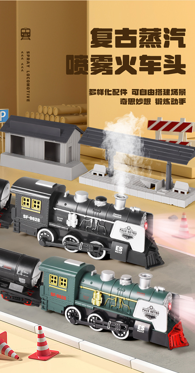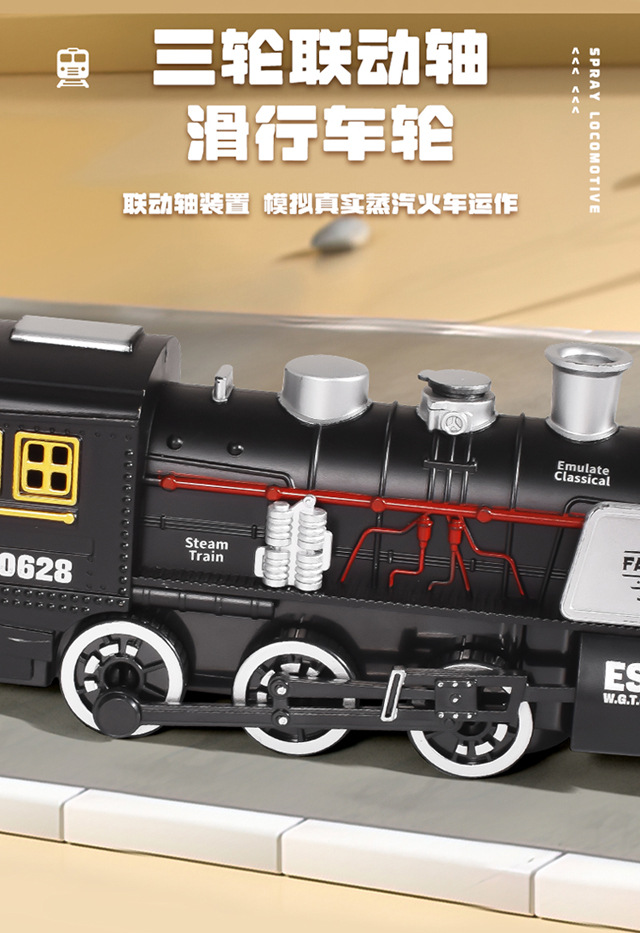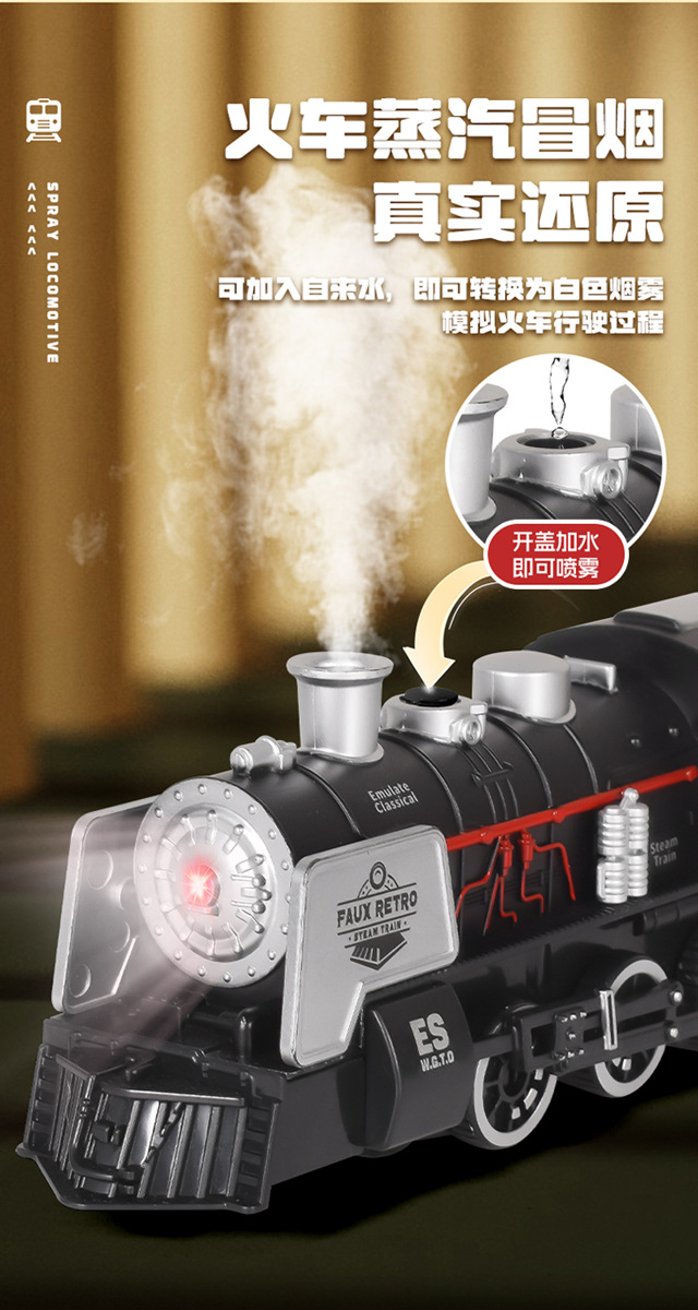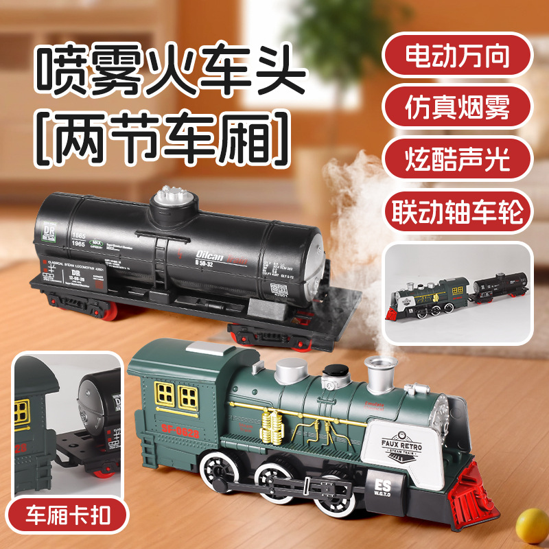 마차가 달린 대형 전기 증기 열차 레트로 어린이 소년 장난감 스프레이 가능한 시뮬레이션 소리와 빛 3-6 세