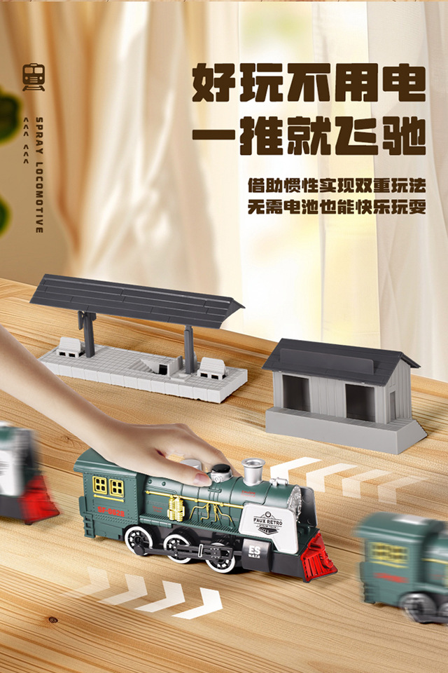 • [배터리 버전] 캐리지 포함 - 범용 스프레이 소리 및 빛 열차 - 녹색