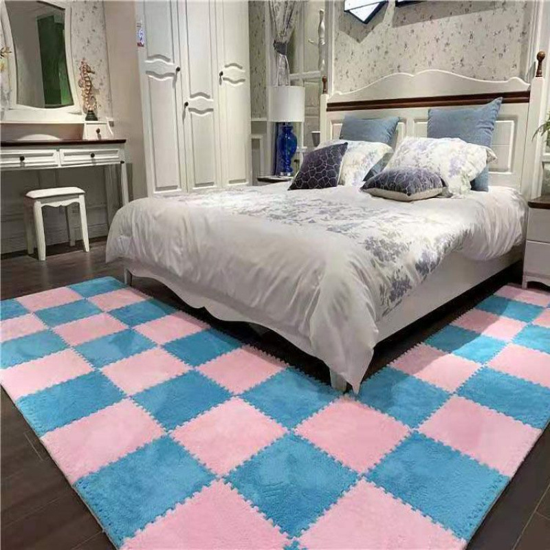 봉제 카펫 침실 소녀 더러운 저항하는 침대 옆 전체 접합 바닥 매트 두꺼운 광장 퍼즐 거품지면 강한 깃털스토어 가기