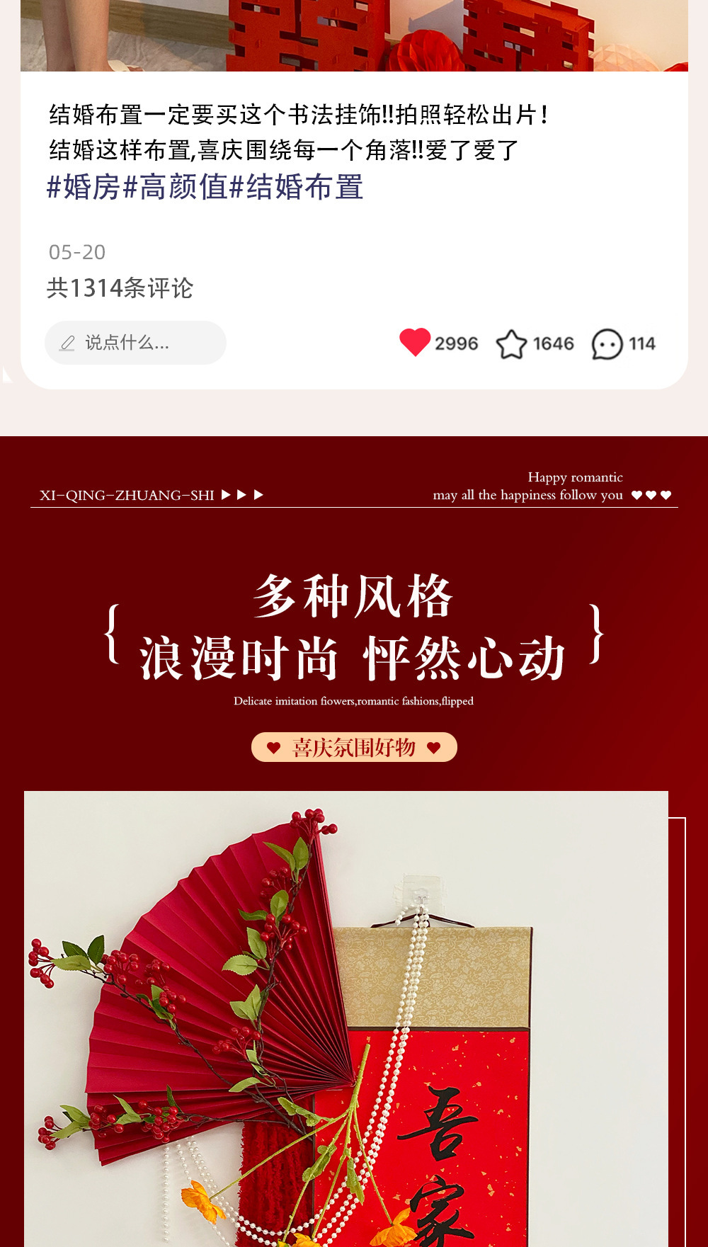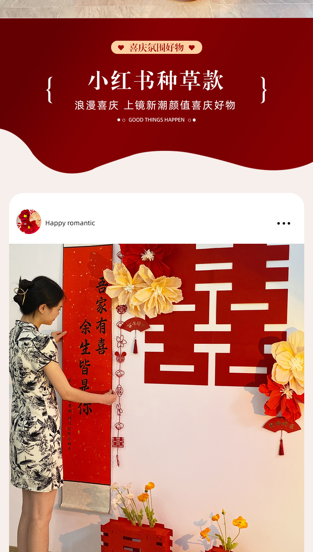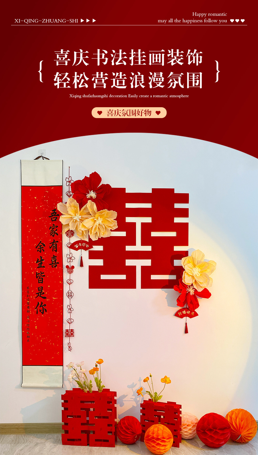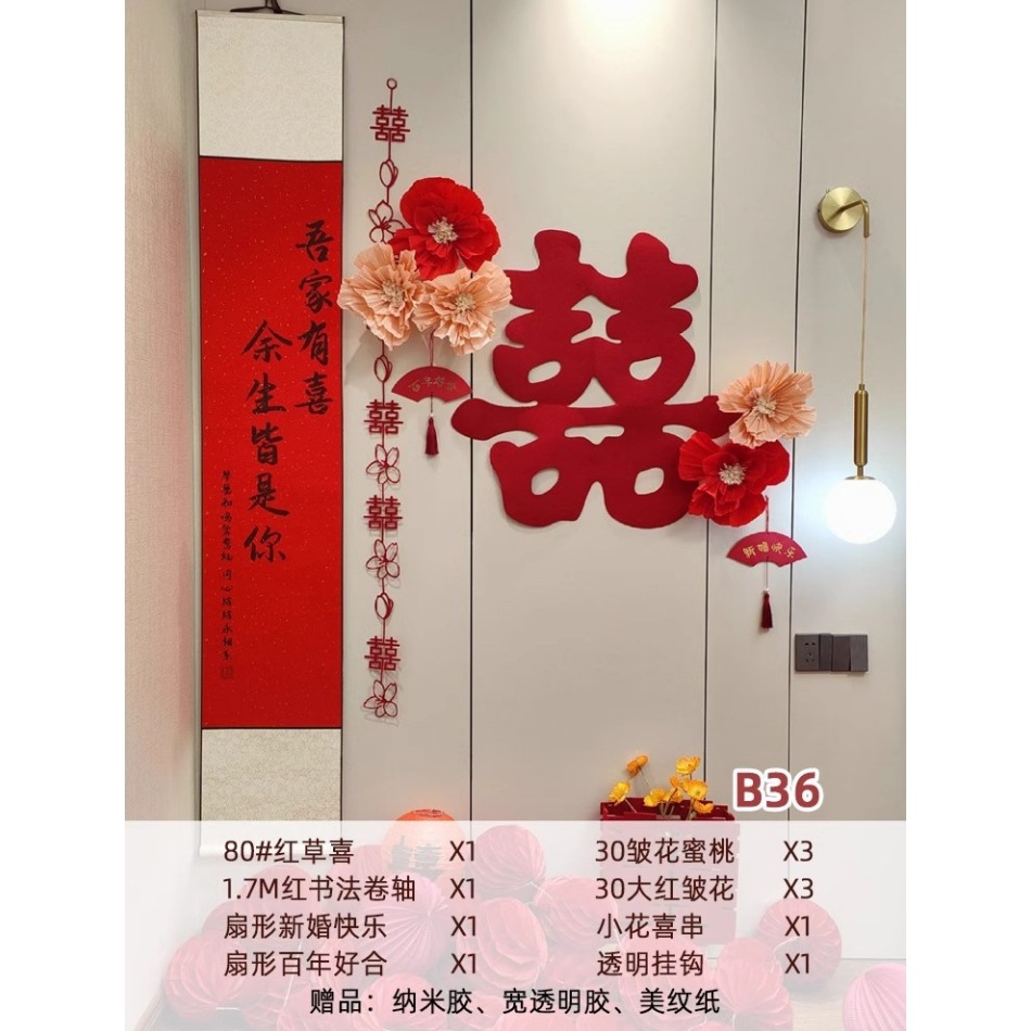 웨딩 룸 중국 스크롤 배경 정렬 세트 조합 3 차원 해피 캐릭터 장식 웨딩 침실 거실스토어 가기