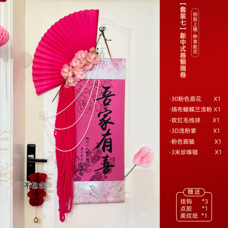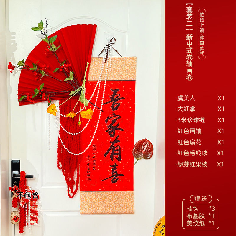 웨딩 룸 중국 스크롤 배경 정렬 세트 조합 3 차원 해피 캐릭터 장식 웨딩 침실 거실