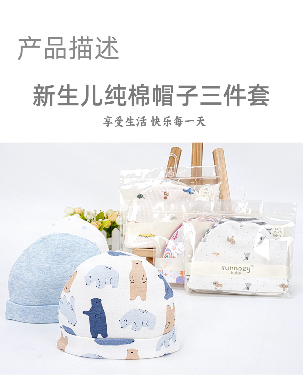 Sunnozy 공장 직접 신생아 하이 퀄리티 면화 사계절 돔 태아 모자 3 피스 모자스토어 가기