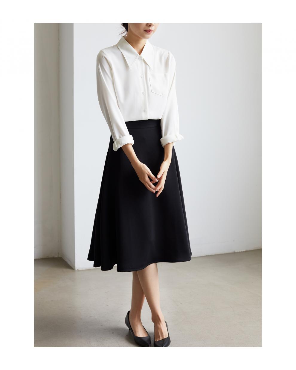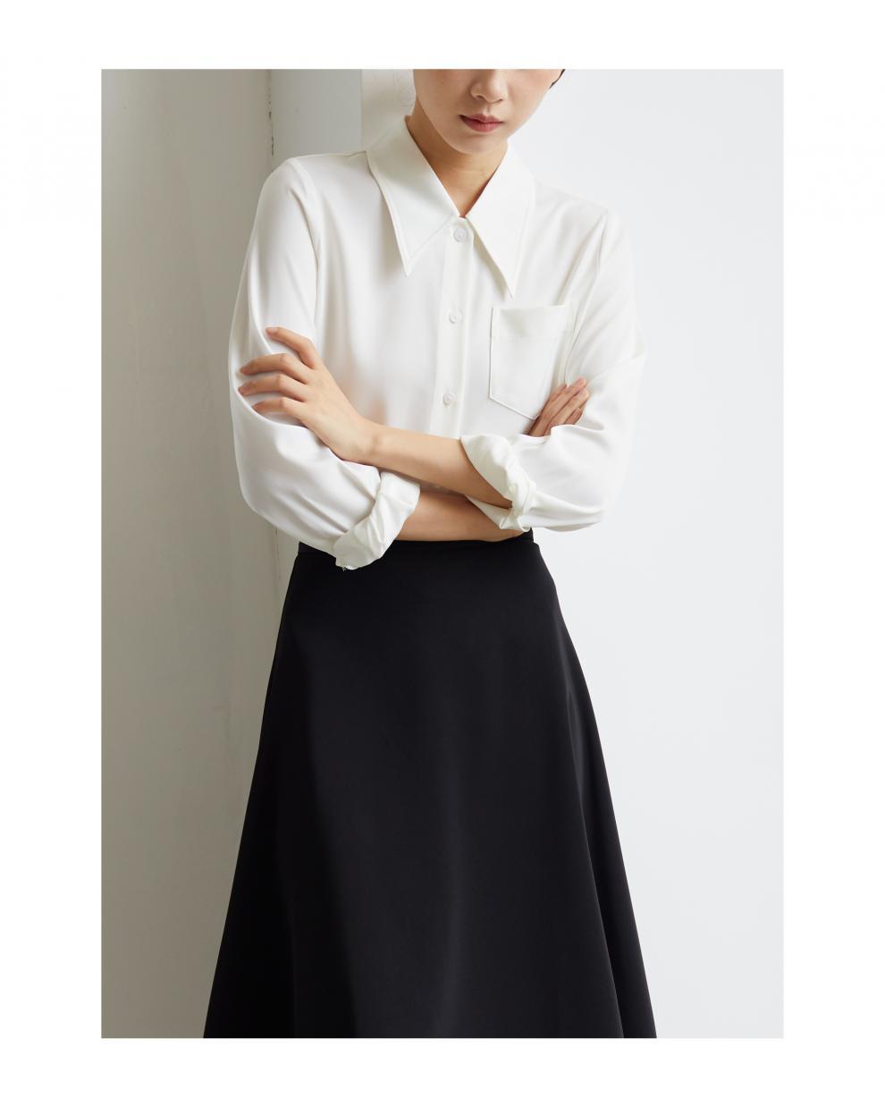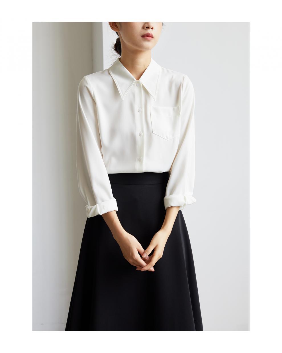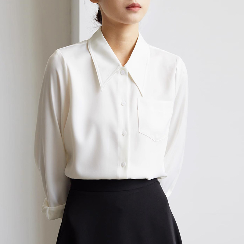 2025 봄 화이트 포인팅 칼라 사틴 닥친 셔츠 여성 경력 통근 긴 소매 우아한 인터뷰 셔츠스토어 가기