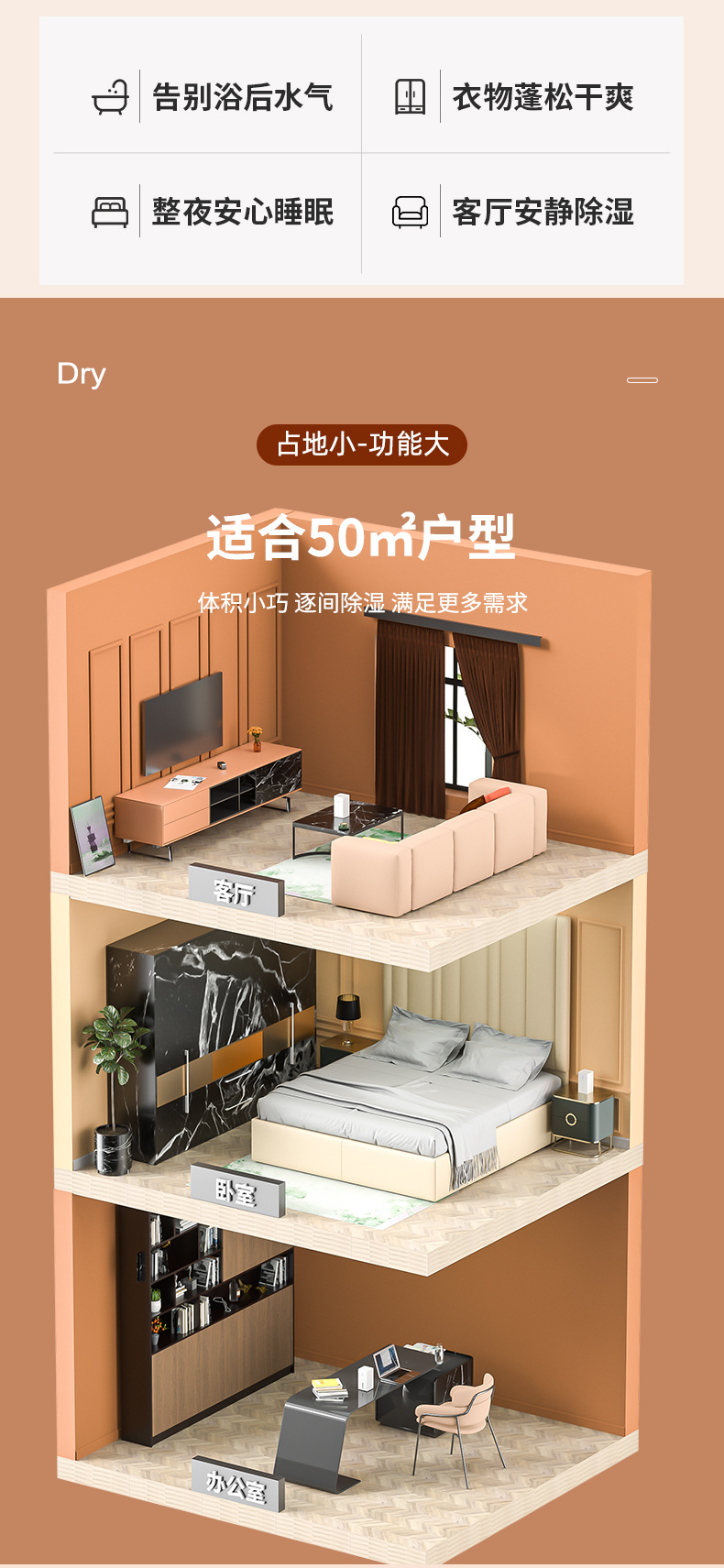 • 플래그십 모델丨듀얼 코어 이중 제습 및 정화 기능이 하나로 통합되어 있습니다(50m7에 적용 가능).