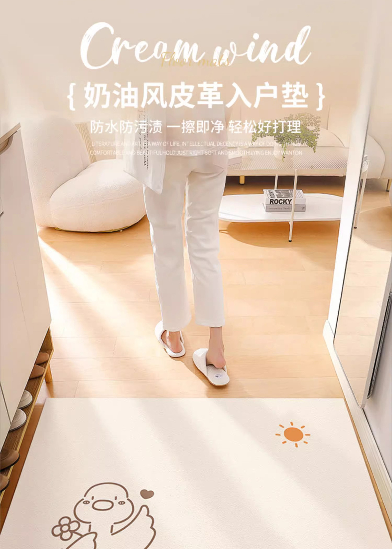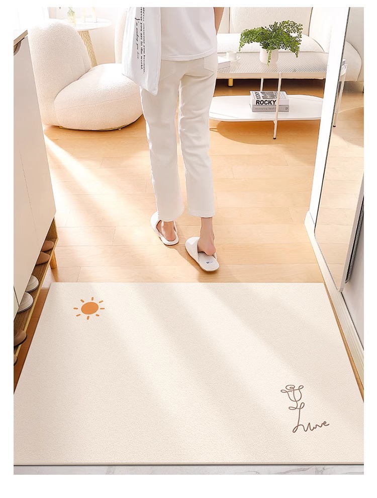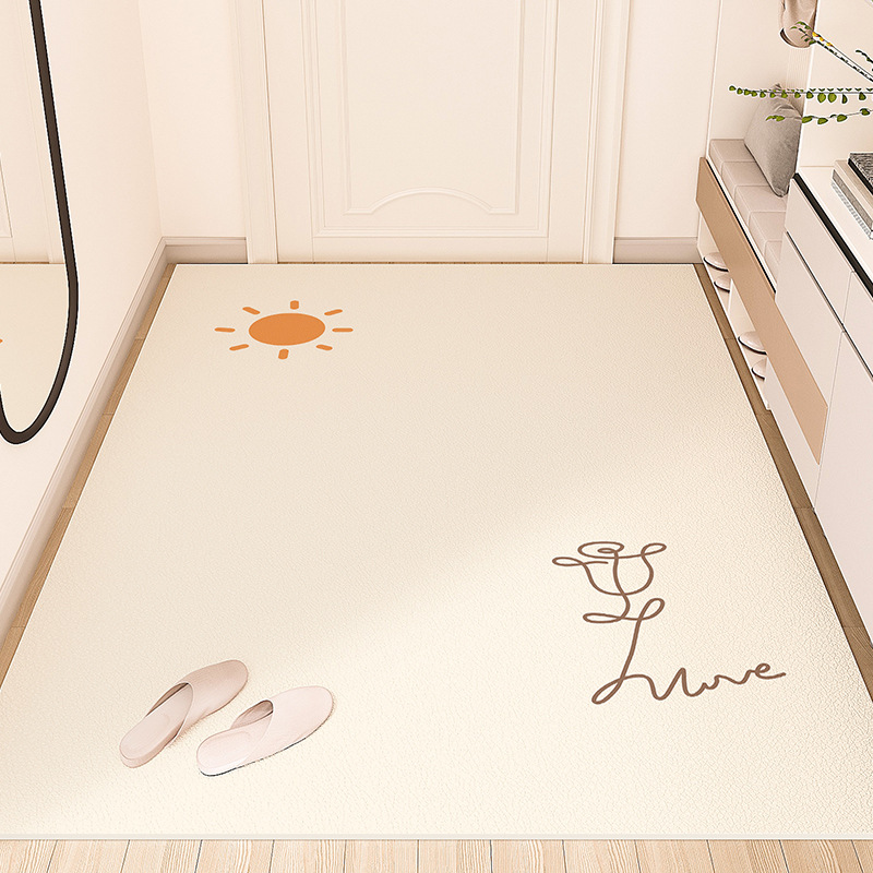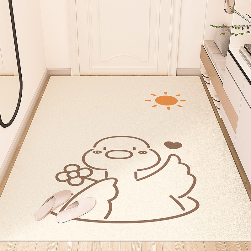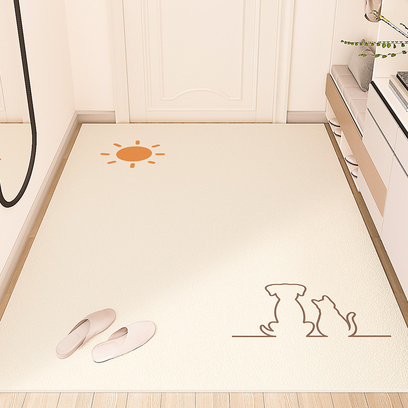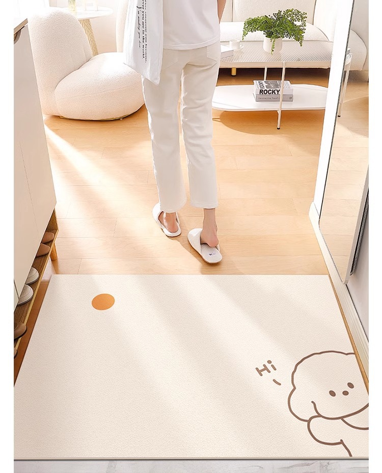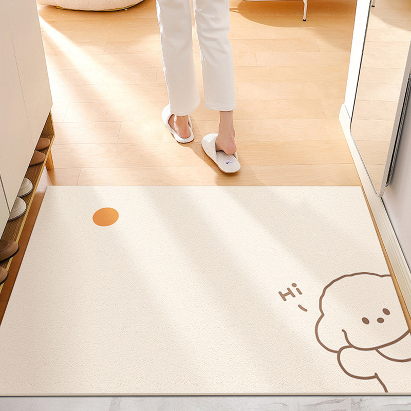 크림색 현관 매트, 문앞 매트, 닦을 수 있고 자를 수 있는 가정용 방수 및 방유 가죽 매트, 귀여운 동물 디자인스토어 가기