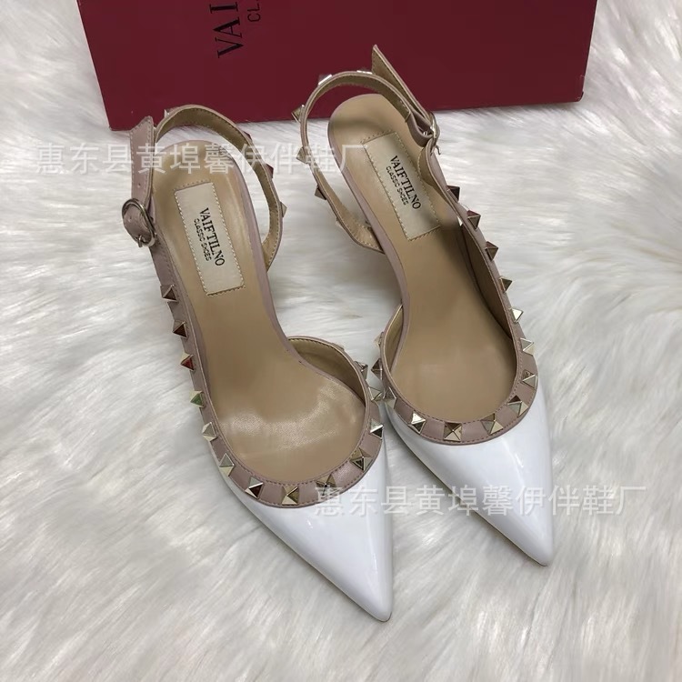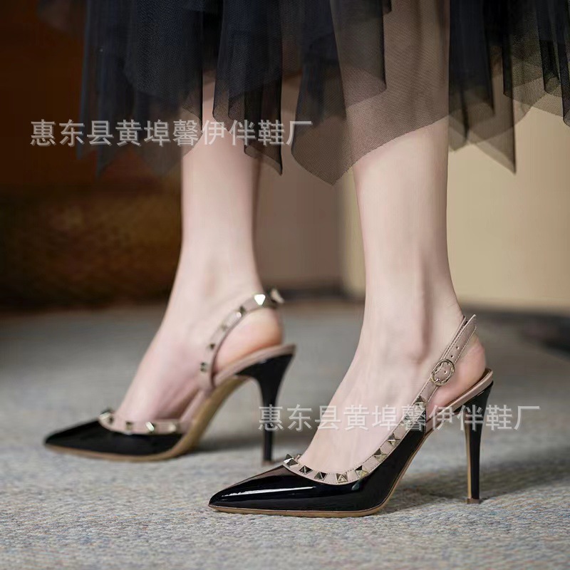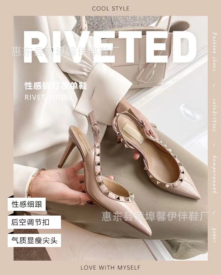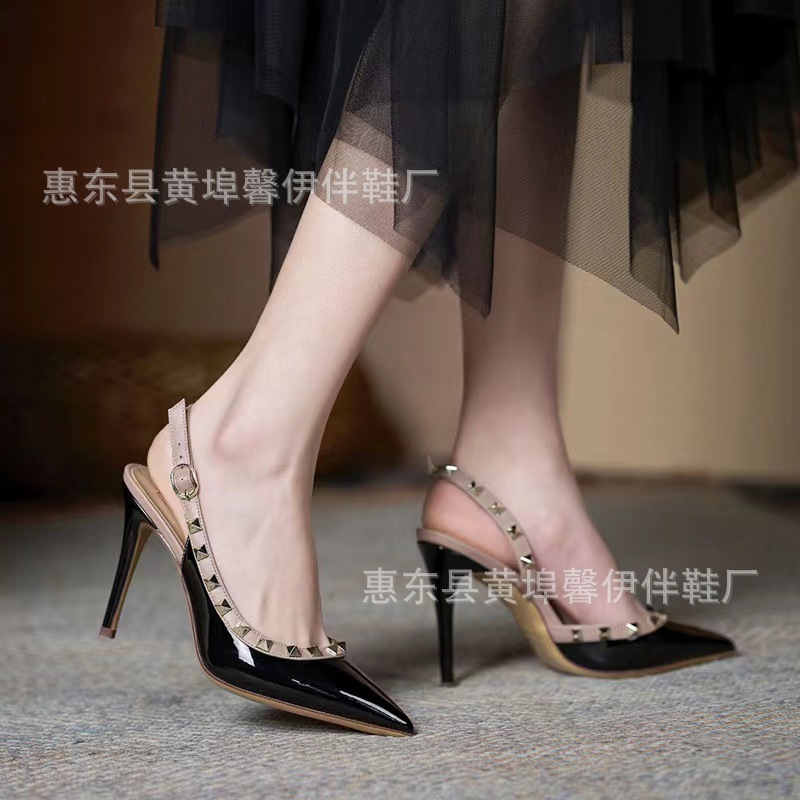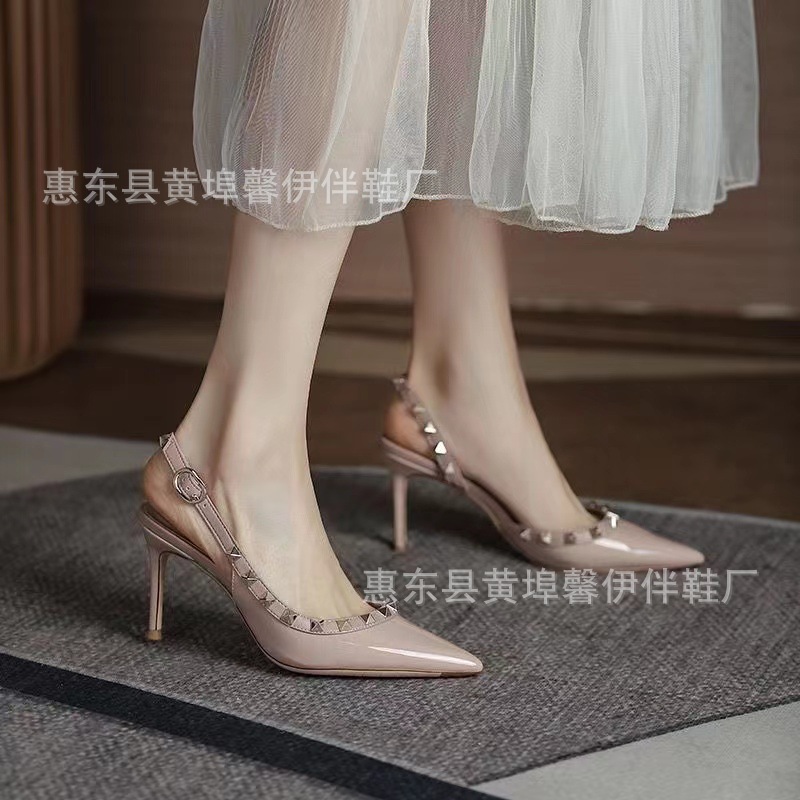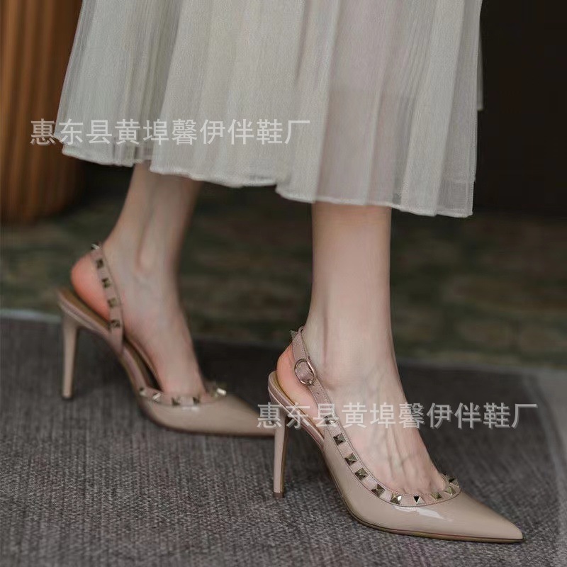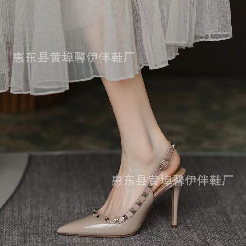 2025 봄과 여름 새로운 누드 뾰족한 리벳 하이힐 스틸레토 힐 리우 딩 사이드 빈 신발 바오터 얕은 여성용 신발스토어 가기