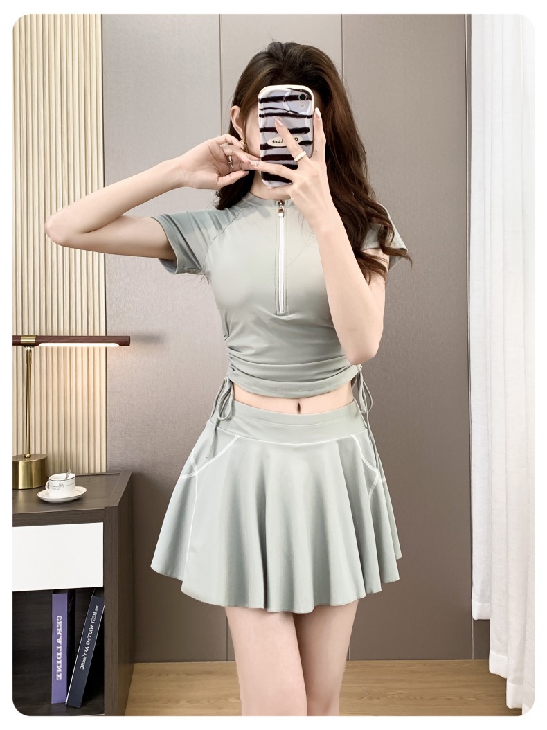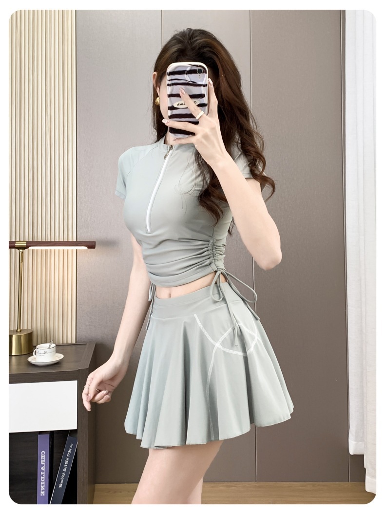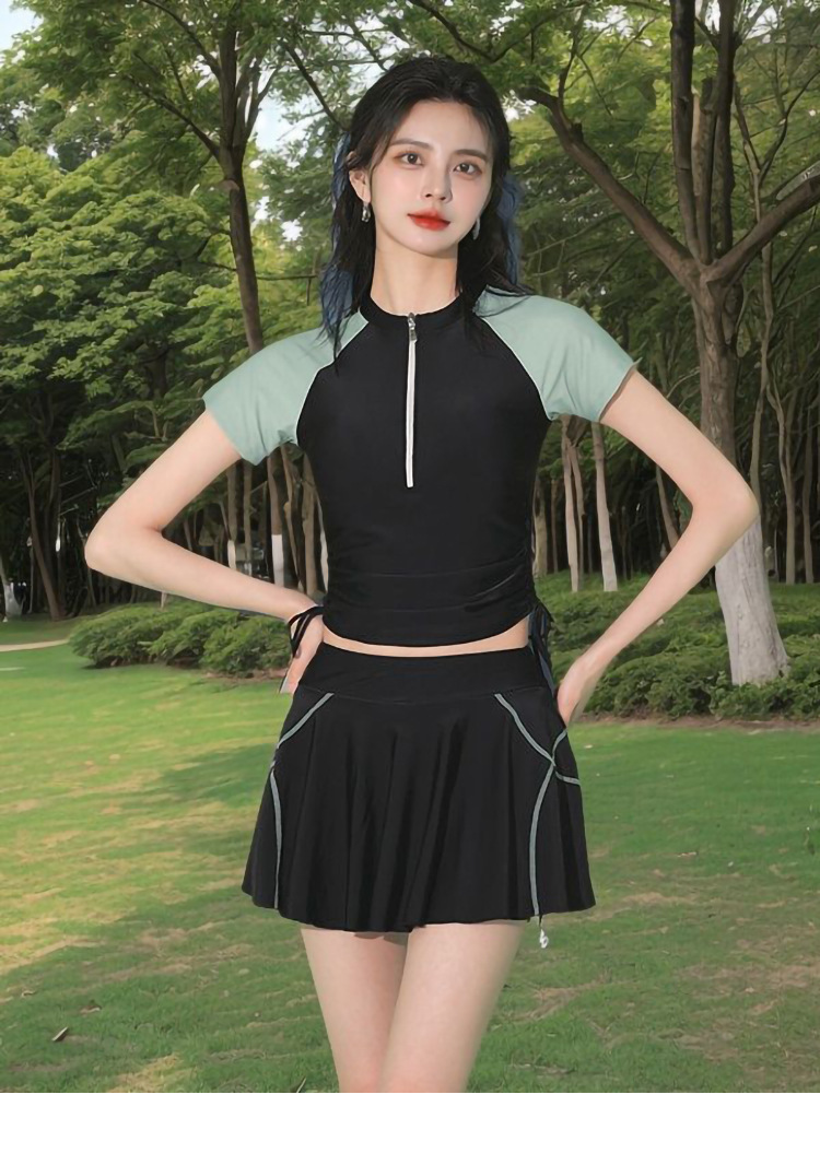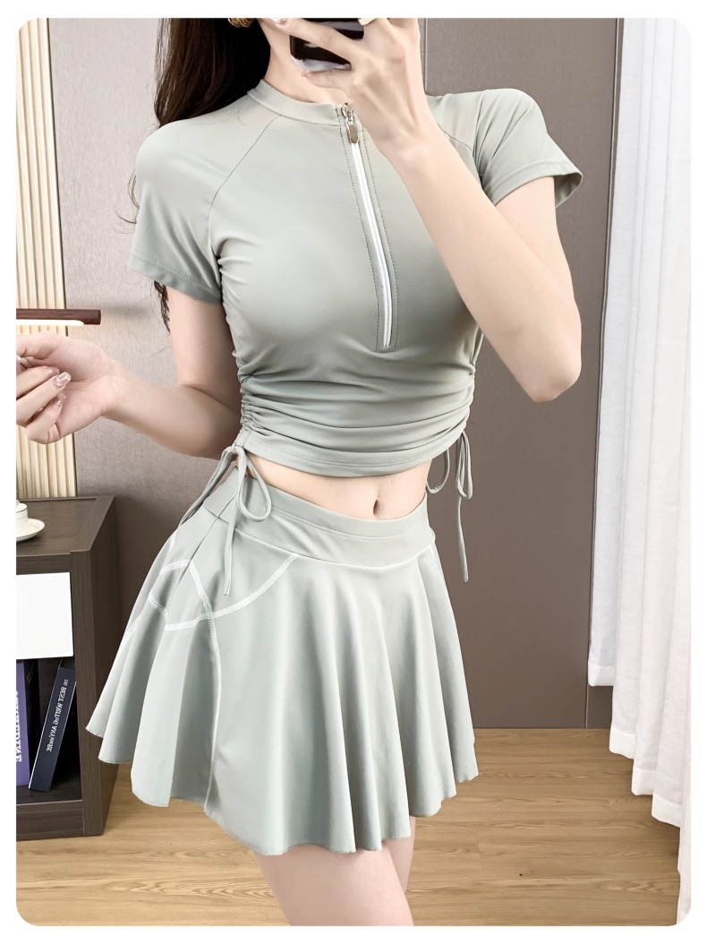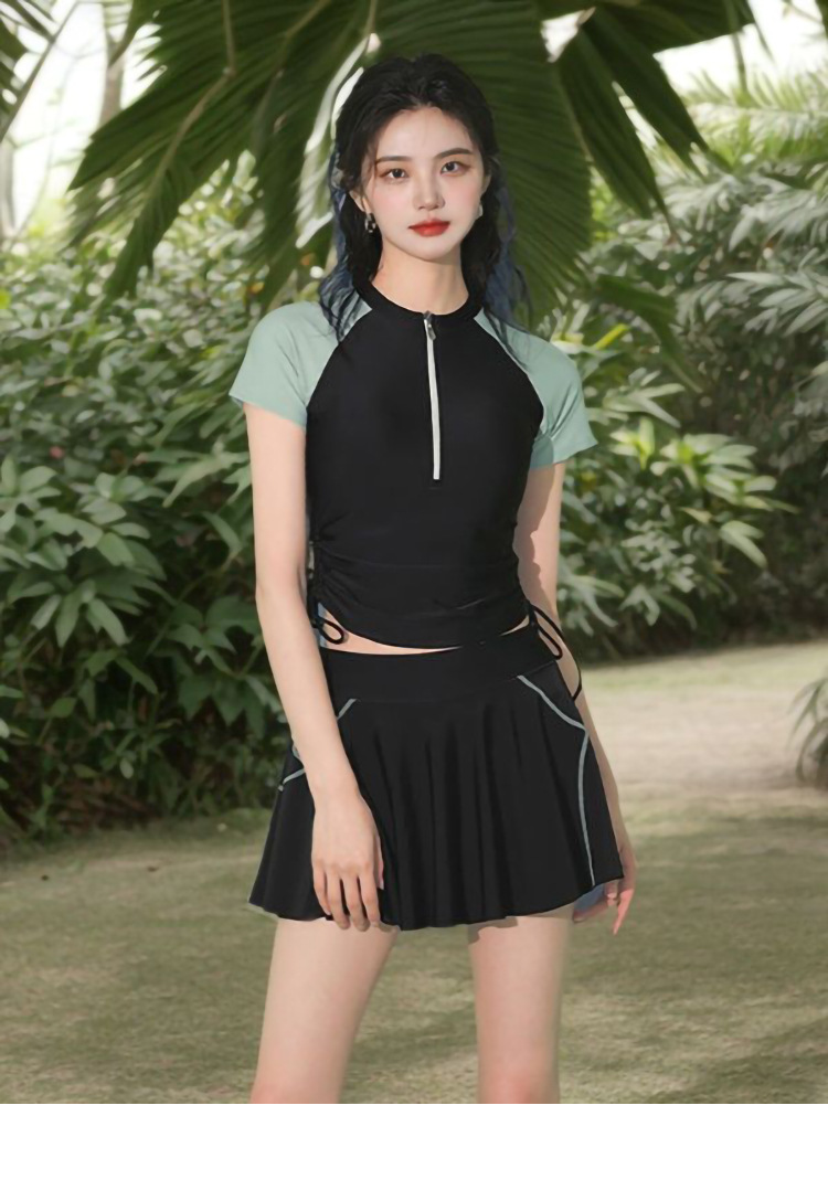 스플릿 스포츠 수영복 여성 2025 복서 스커트 투피스 티셔츠 소녀 학생 자외선 차단제 수영 세트 도매스토어 가기