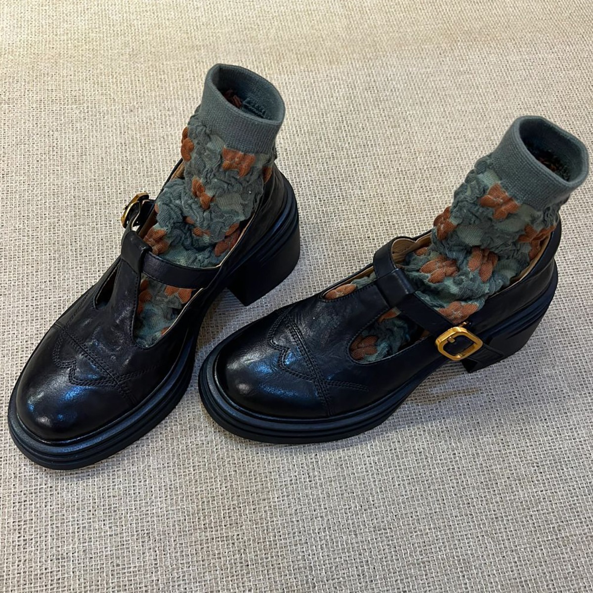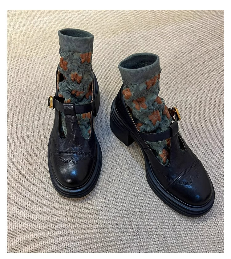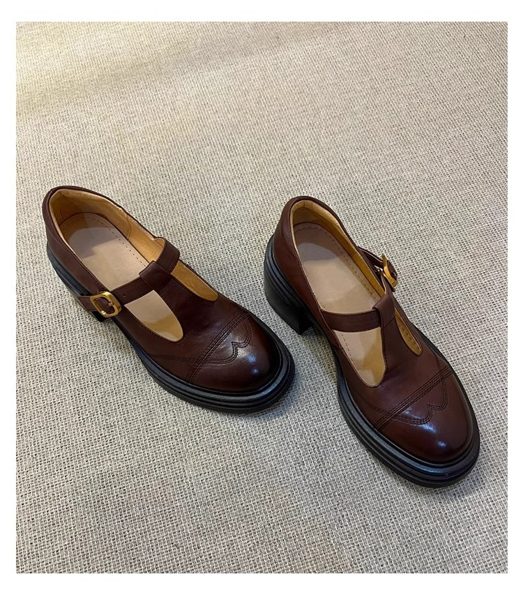 빈티지 두꺼운 힐 T-버클 할로우 로퍼 여성 가을 새 라운드 발가락 메리 제인 신발 영국 두꺼운 단독 신발스토어 가기