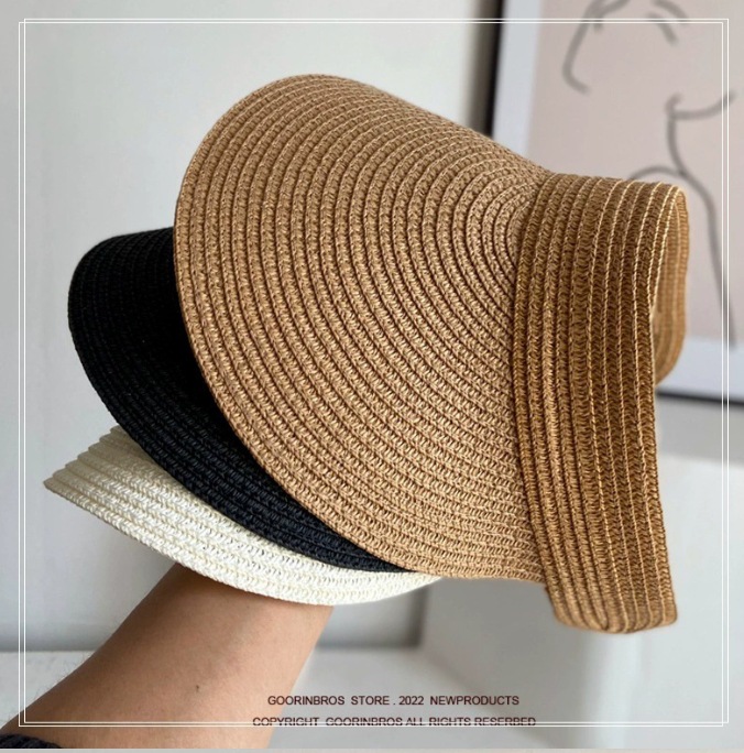 새로운 봄 선 스크린 모자 여성의 야외 여행 차양 모자 대형 브림 빈 탑 접이식 태양 모자 비치 밀짚 모자스토어 가기