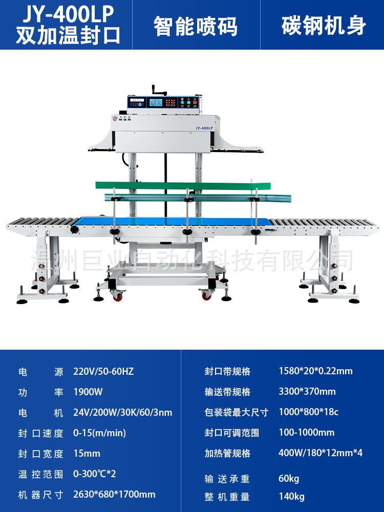 • JY-400LP 이중 가열 밀봉 + 잉크젯 코딩(탄소강 모델)