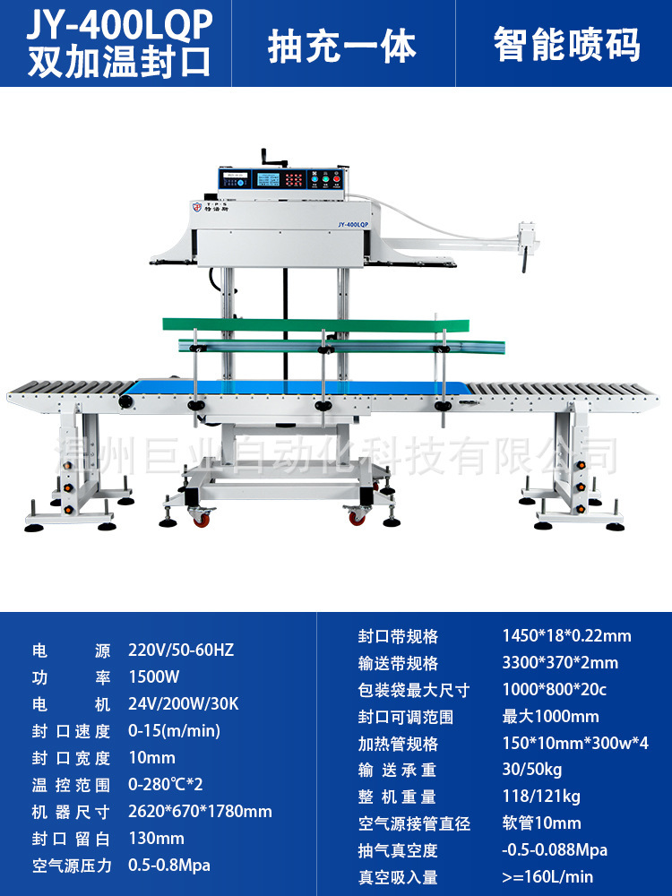 • JY-400LQP 이중 가열 + 충전 + 잉크젯 코딩 통합 씰(탄소강 모델)