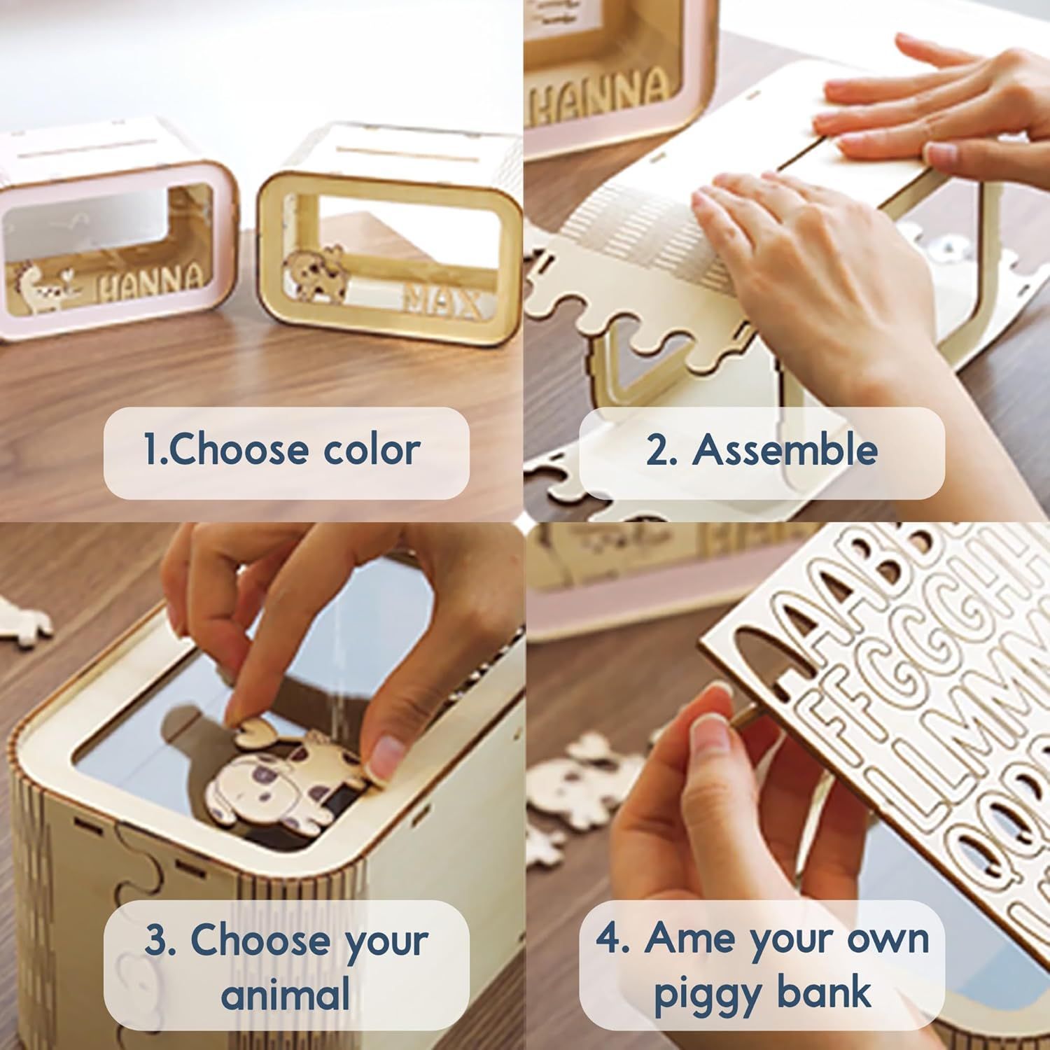 국경 간 뜨거운 판매 어린이 나무 돼지 저금통 홈 침실 데스크탑 장식품 맞춤형 만화 머니 박스