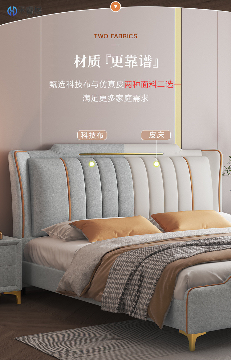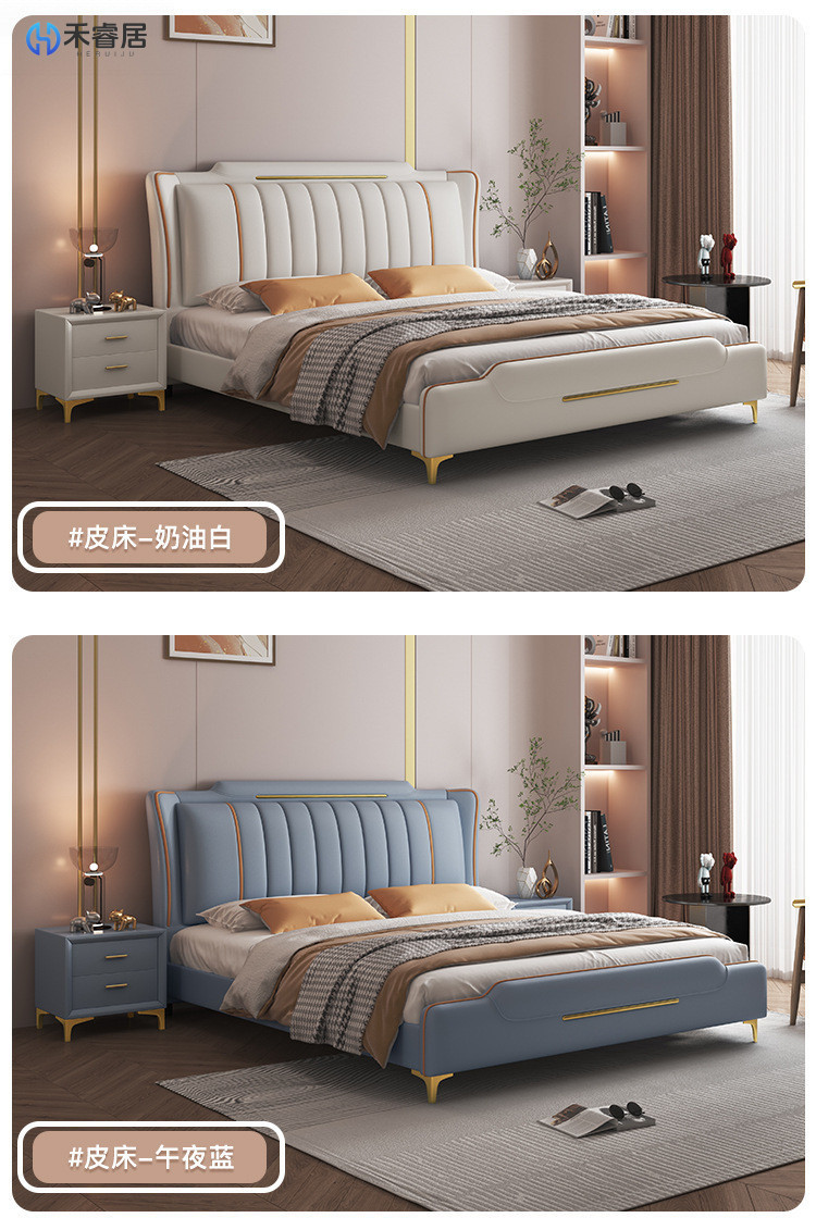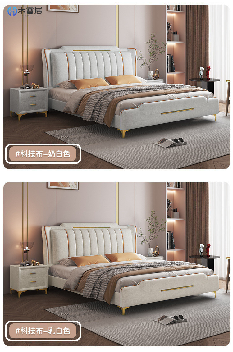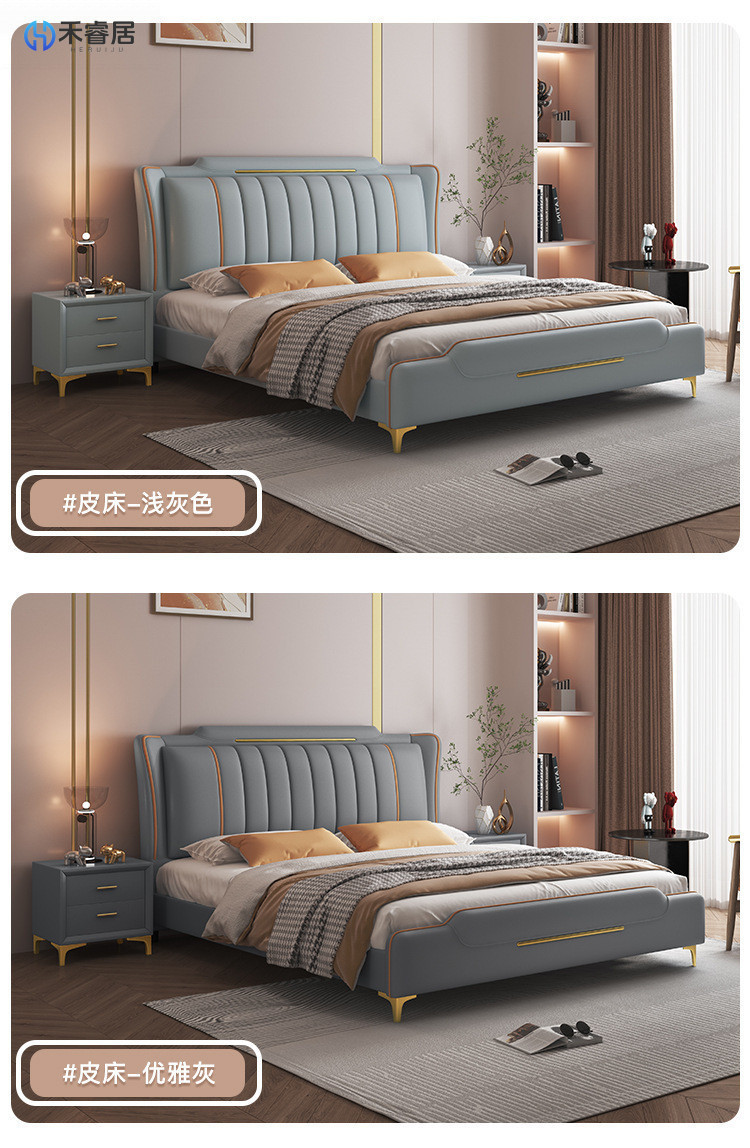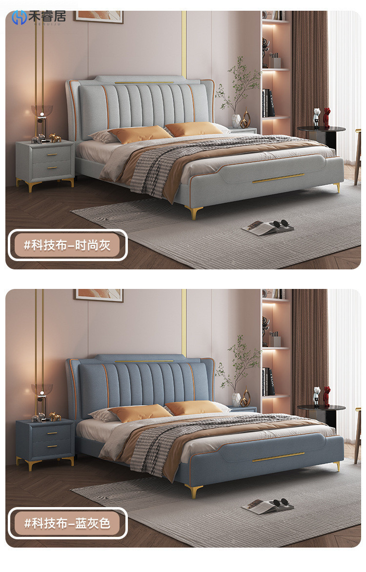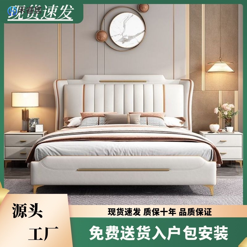 간단한 현대 가죽 침대 마스터 침실 대기 가죽 침대 1.8 미터 1.5 미터 침실 더블 침대 웨딩 침대 세탁 기술 천 침대스토어 가기