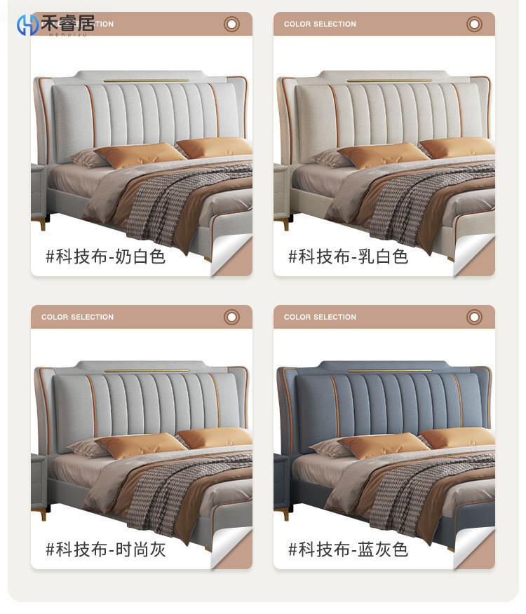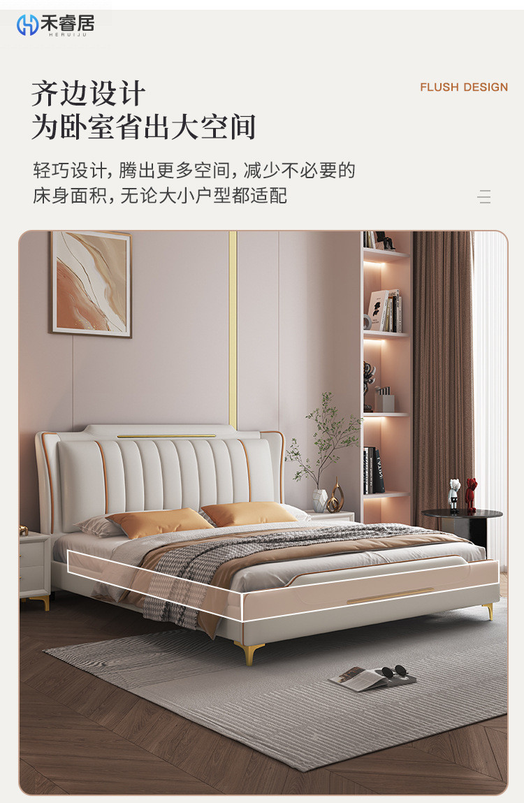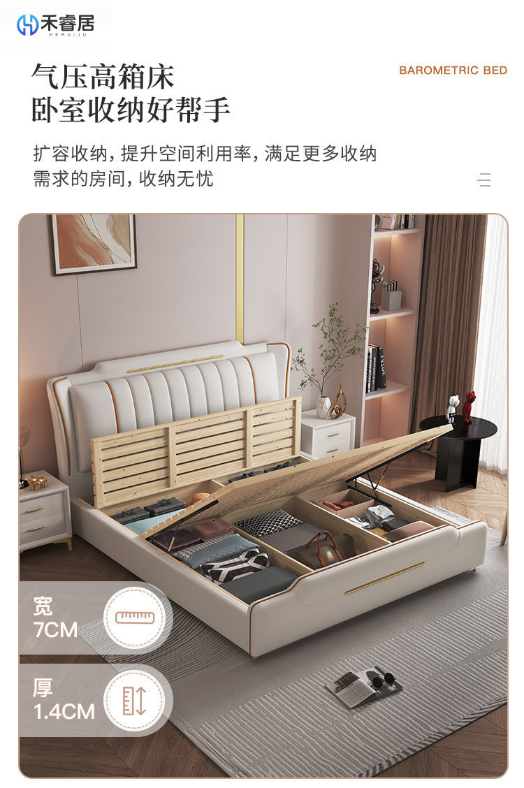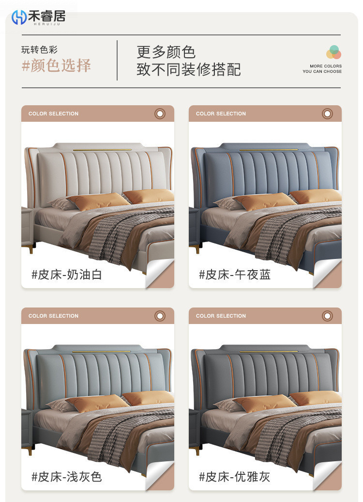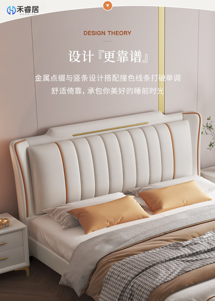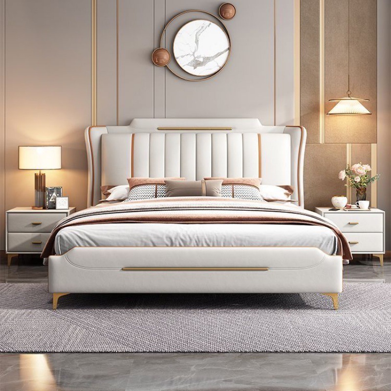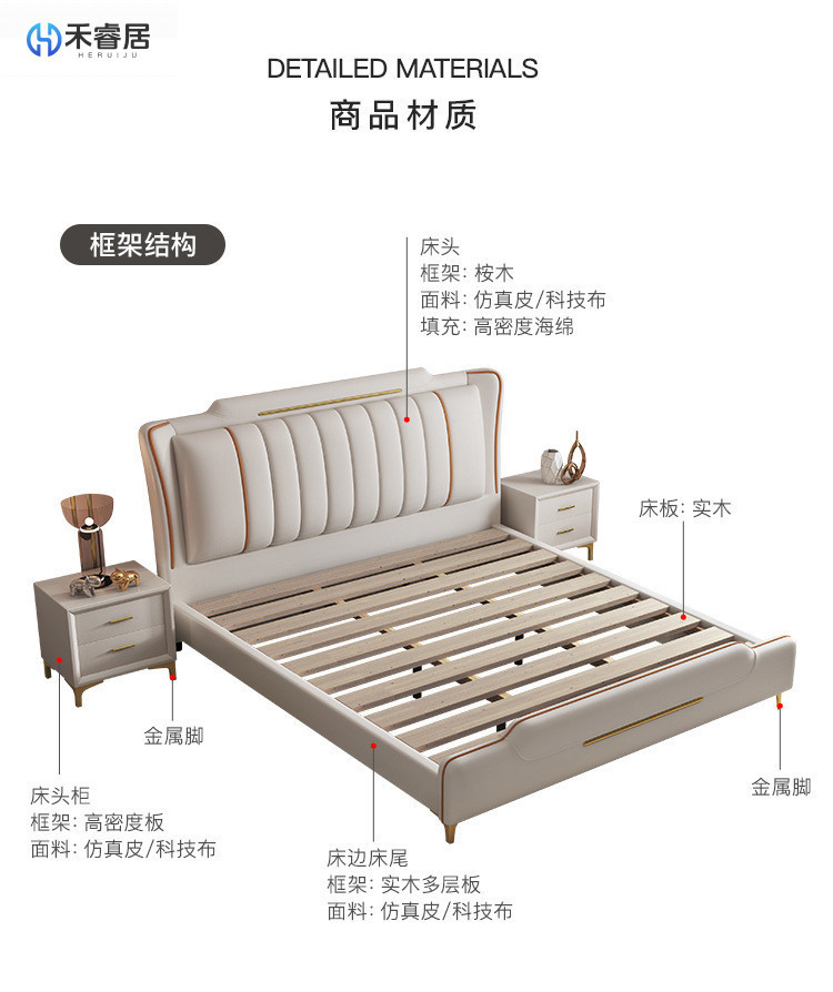 간단한 현대 가죽 침대 마스터 침실 대기 가죽 침대 1.8 미터 1.5 미터 침실 더블 침대 웨딩 침대 세탁 기술 천 침대스토어 가기