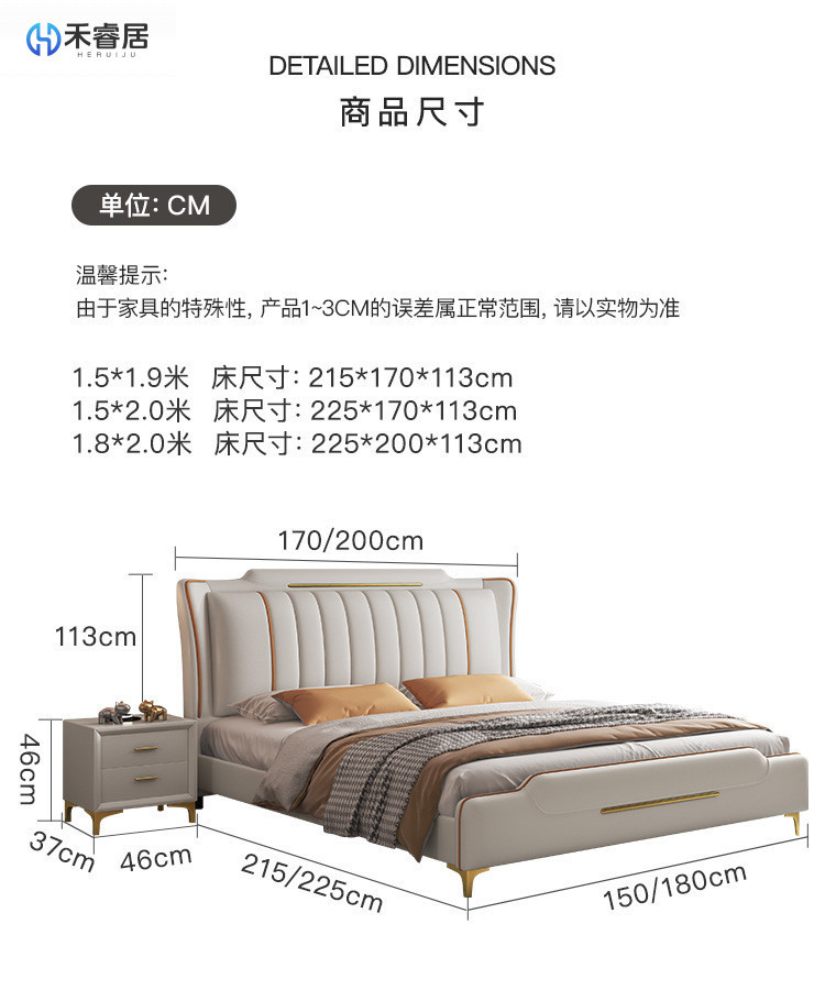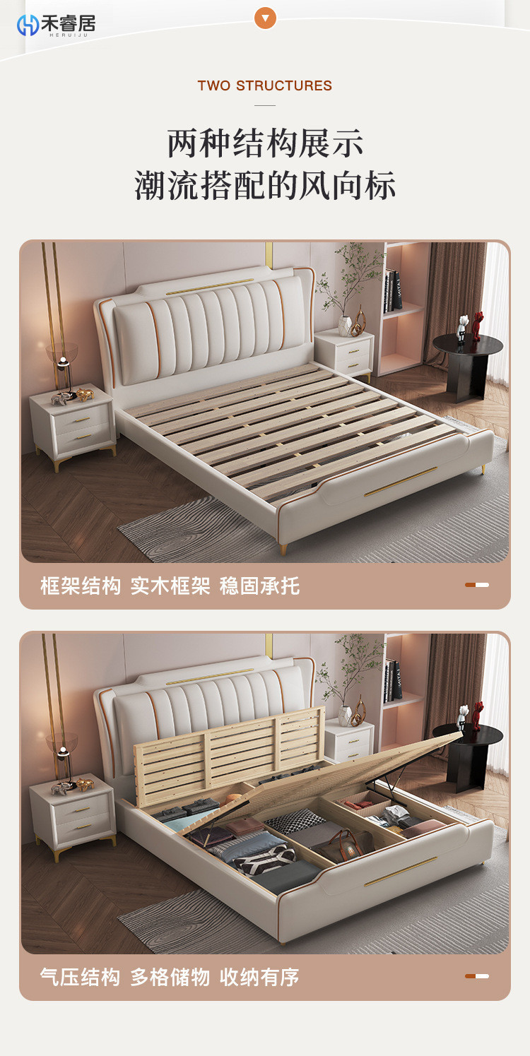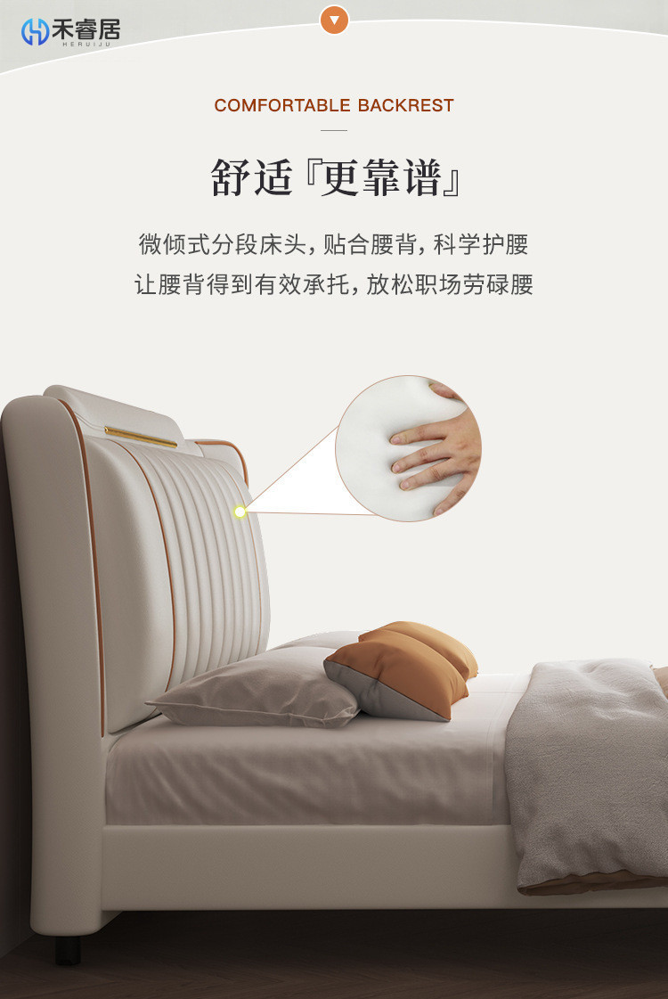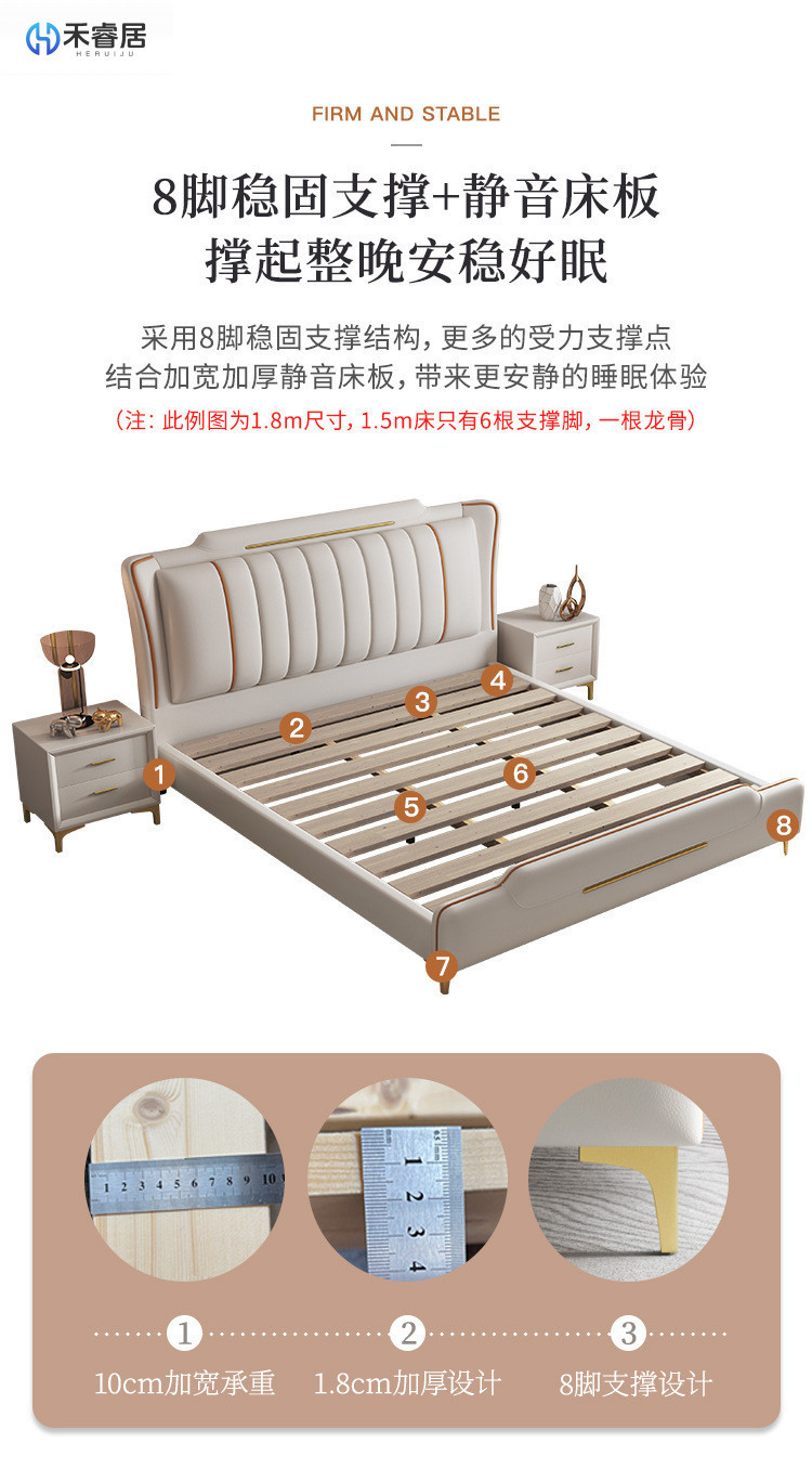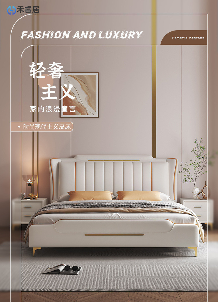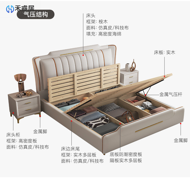 간단한 현대 가죽 침대 마스터 침실 대기 가죽 침대 1.8 미터 1.5 미터 침실 더블 침대 웨딩 침대 세탁 기술 천 침대스토어 가기