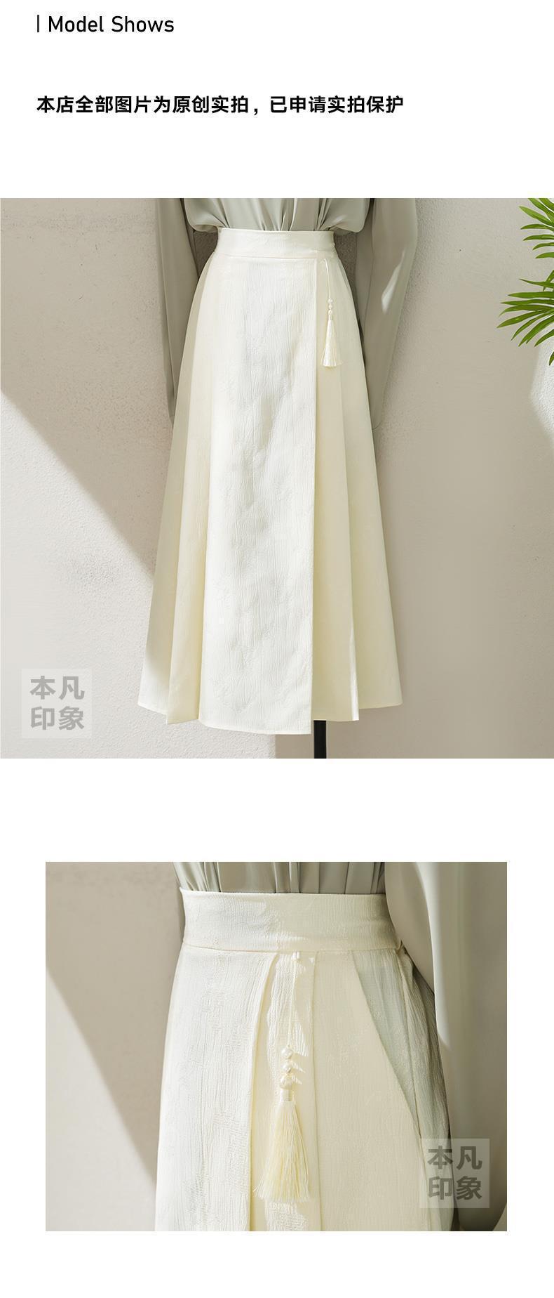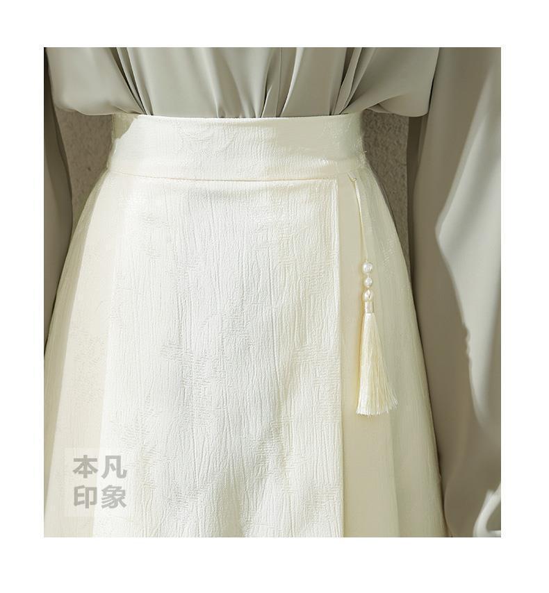 새로운 중국 복고풍 디자인 높은 허리 스커트 여성의 2024 봄 새로운 중간 길이 주름 치마스토어 가기