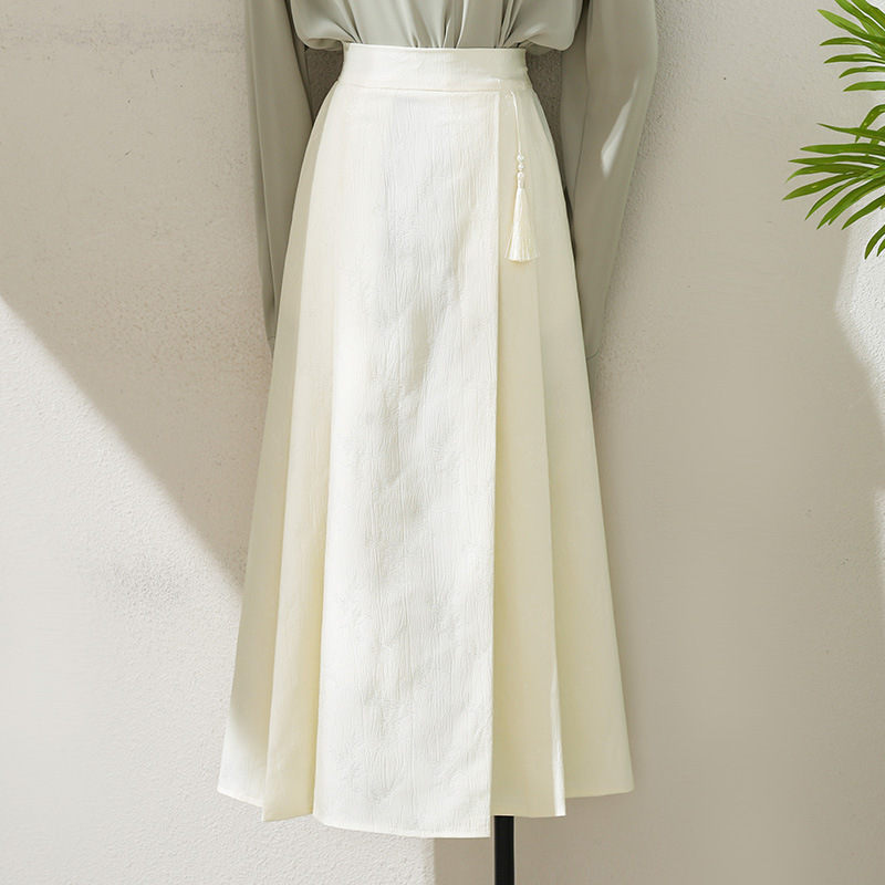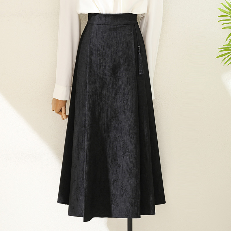 새로운 중국 복고풍 디자인 높은 허리 스커트 여성의 2024 봄 새로운 중간 길이 주름 치마