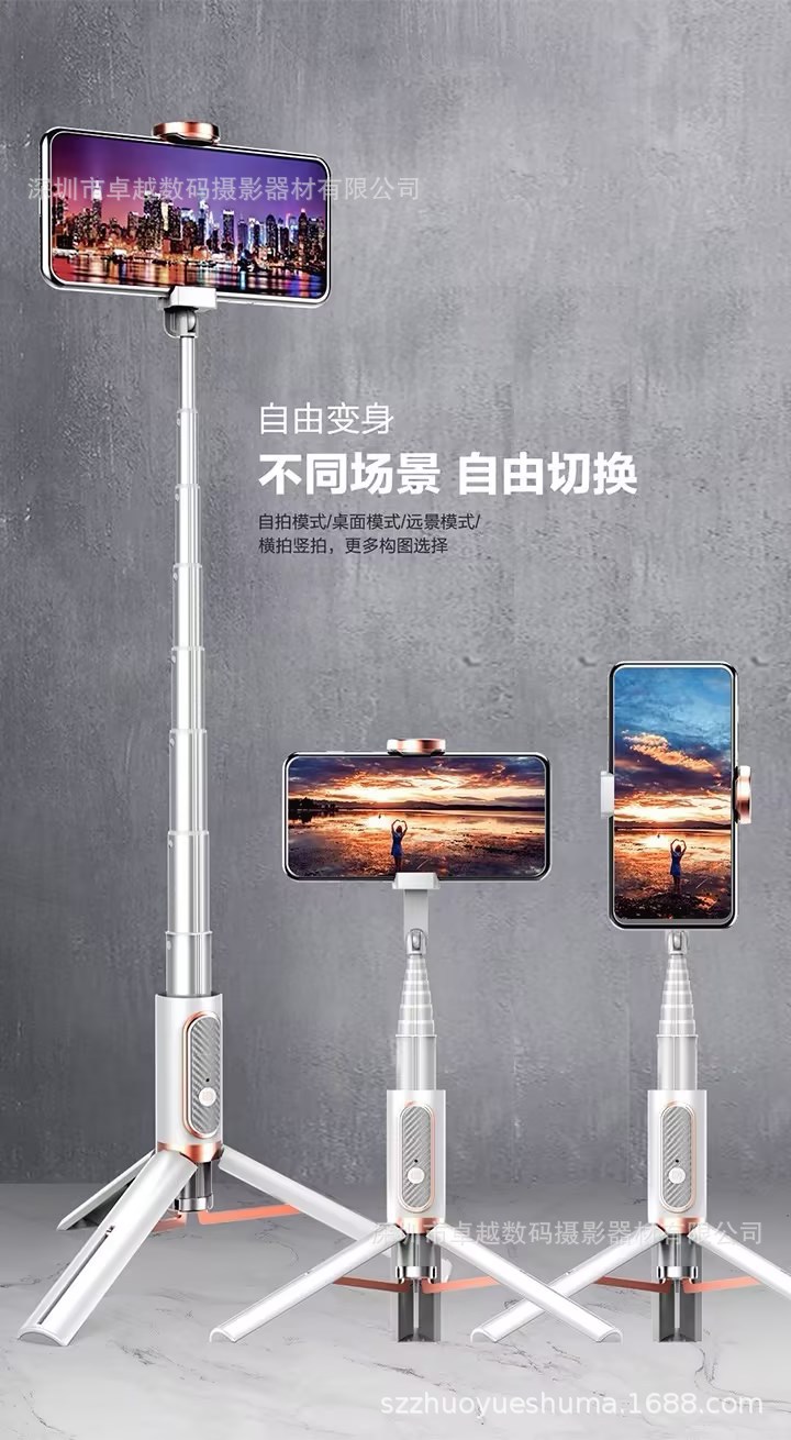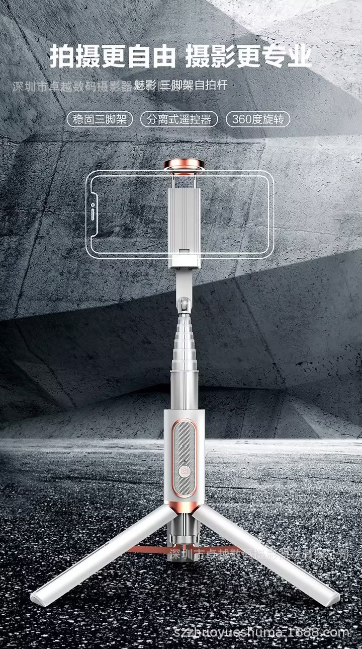 새로운 블루투스 셀카 스틱 통합 데스크탑 휴대 전화 라이브 3 다리 브래킷 미니 휴대용 알루미늄 합금 휴대 전화 자체스토어 가기