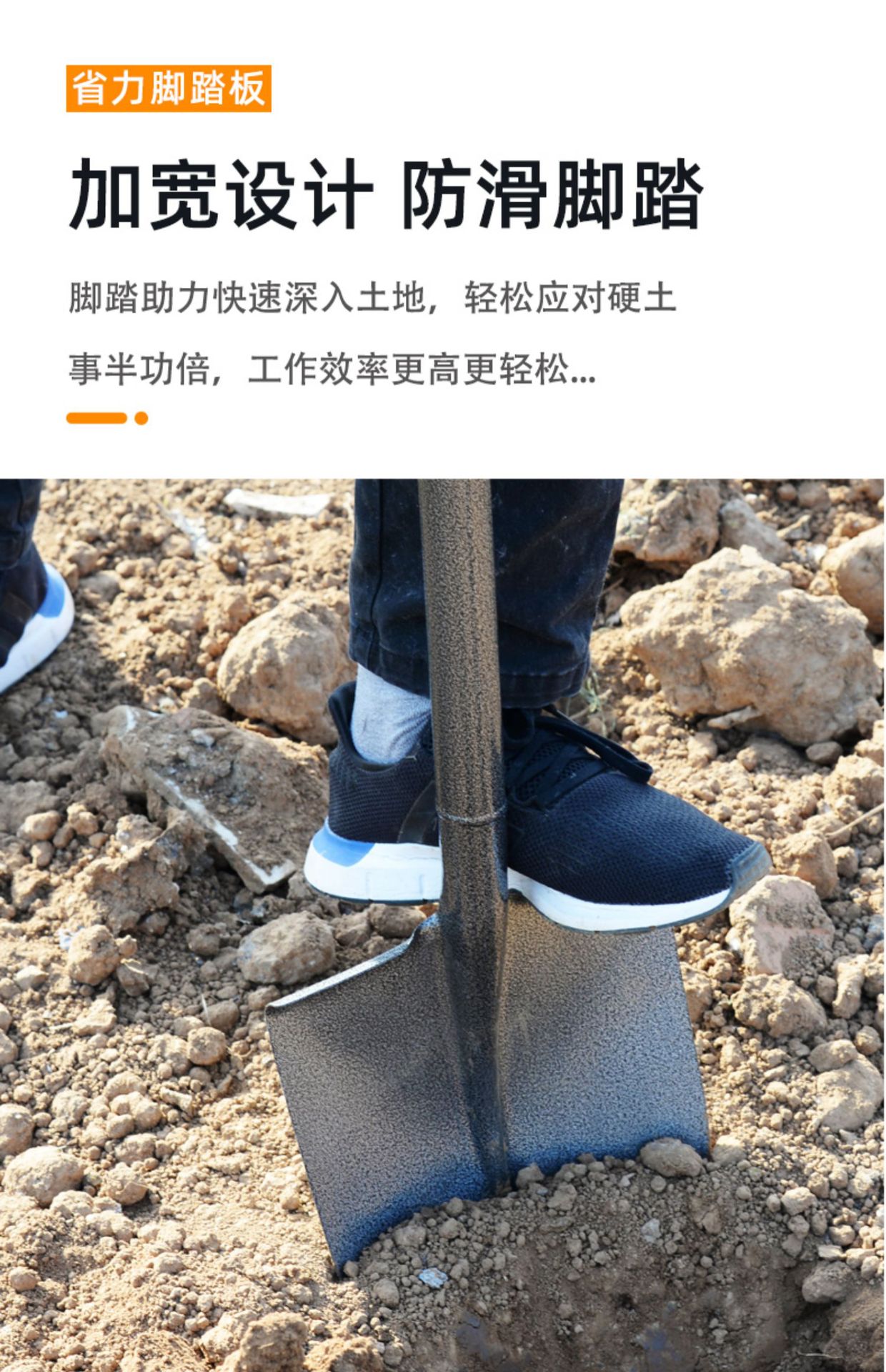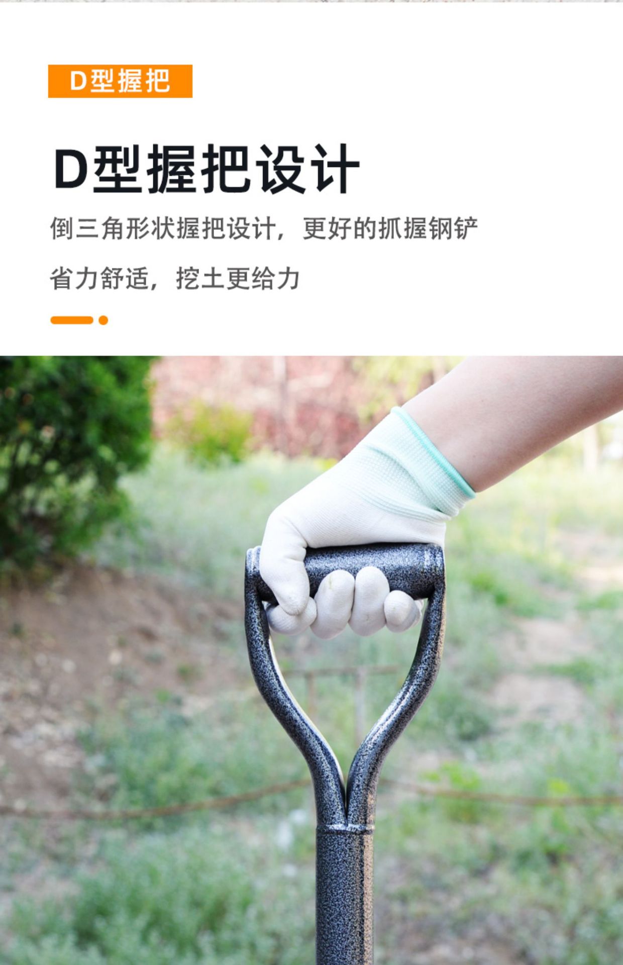 • aa 삽 머리(납작한 머리) + 1.4m 나무 막대 손잡이