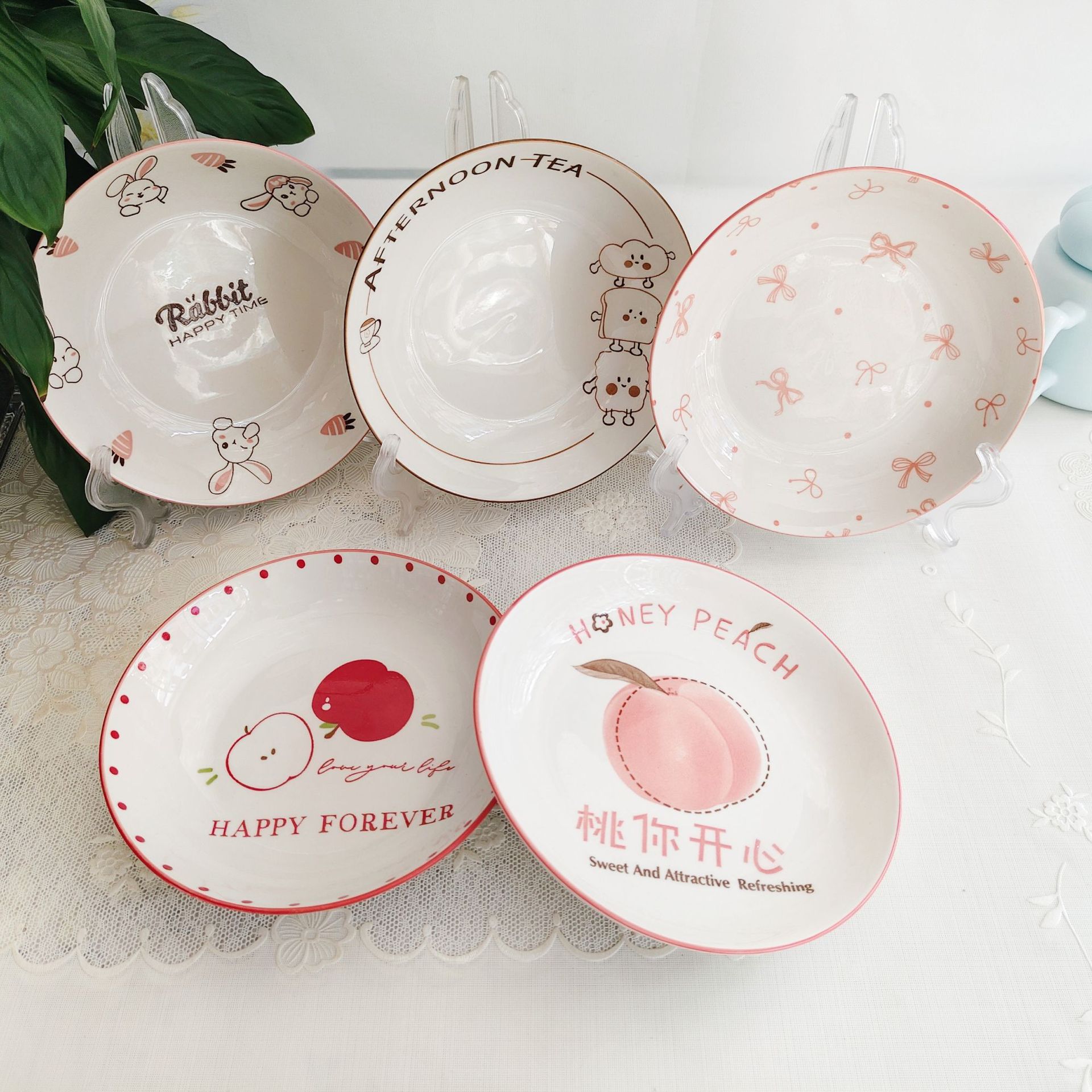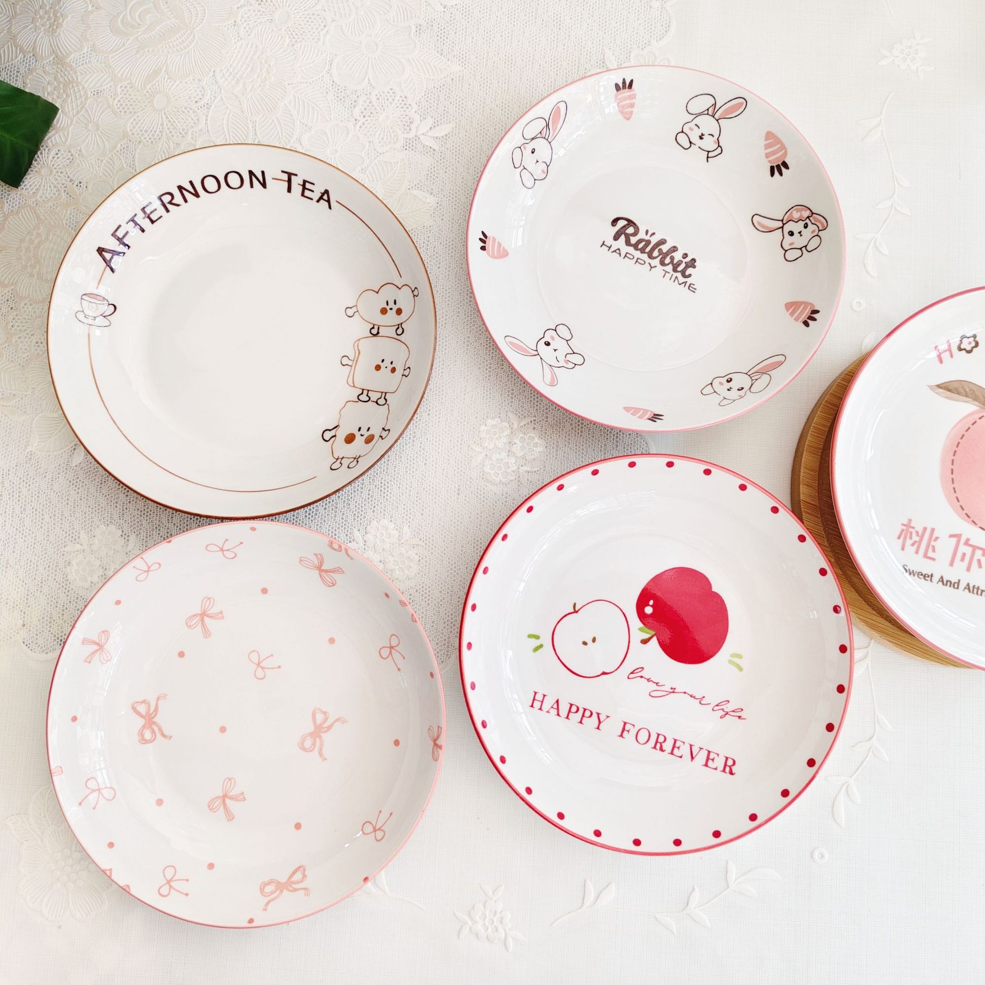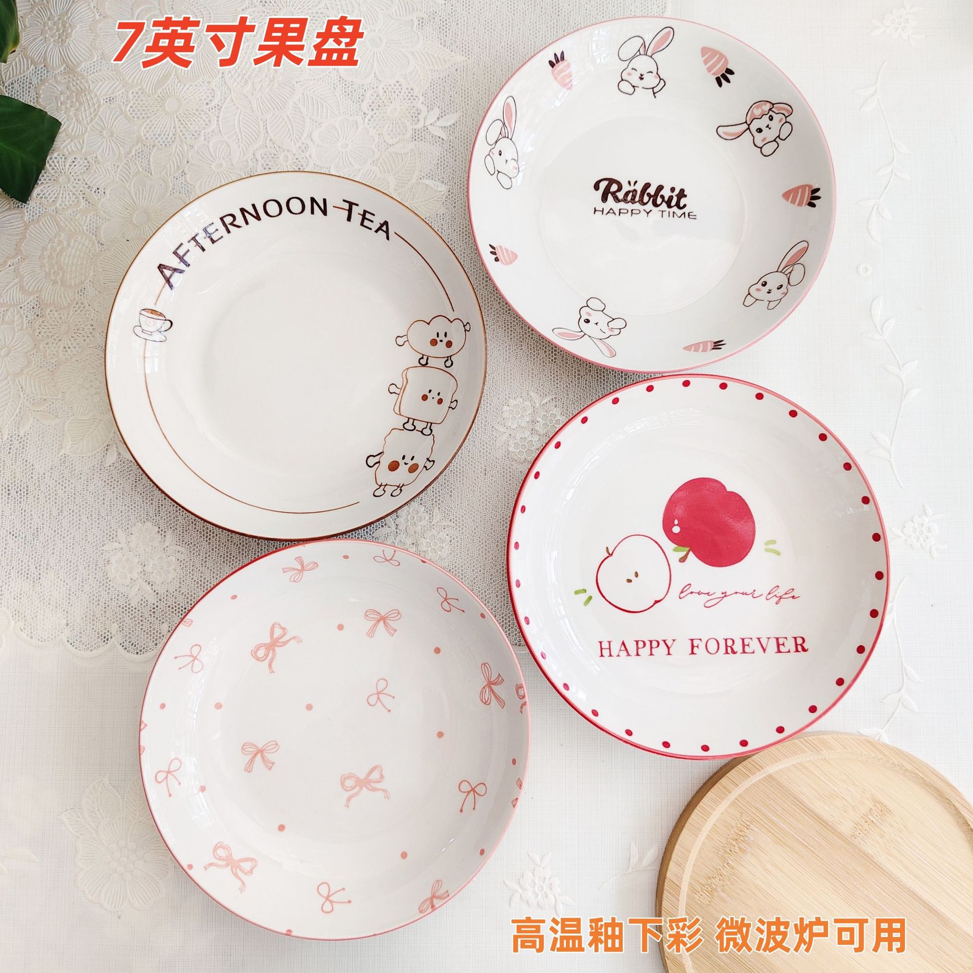 심플하고 창의적인 7inch 도자기 접시, 언더글레이즈 컬러 세라믹 식기, 야채 접시, 밥 접시, 과일 접시, 전자레인지 사용 가능