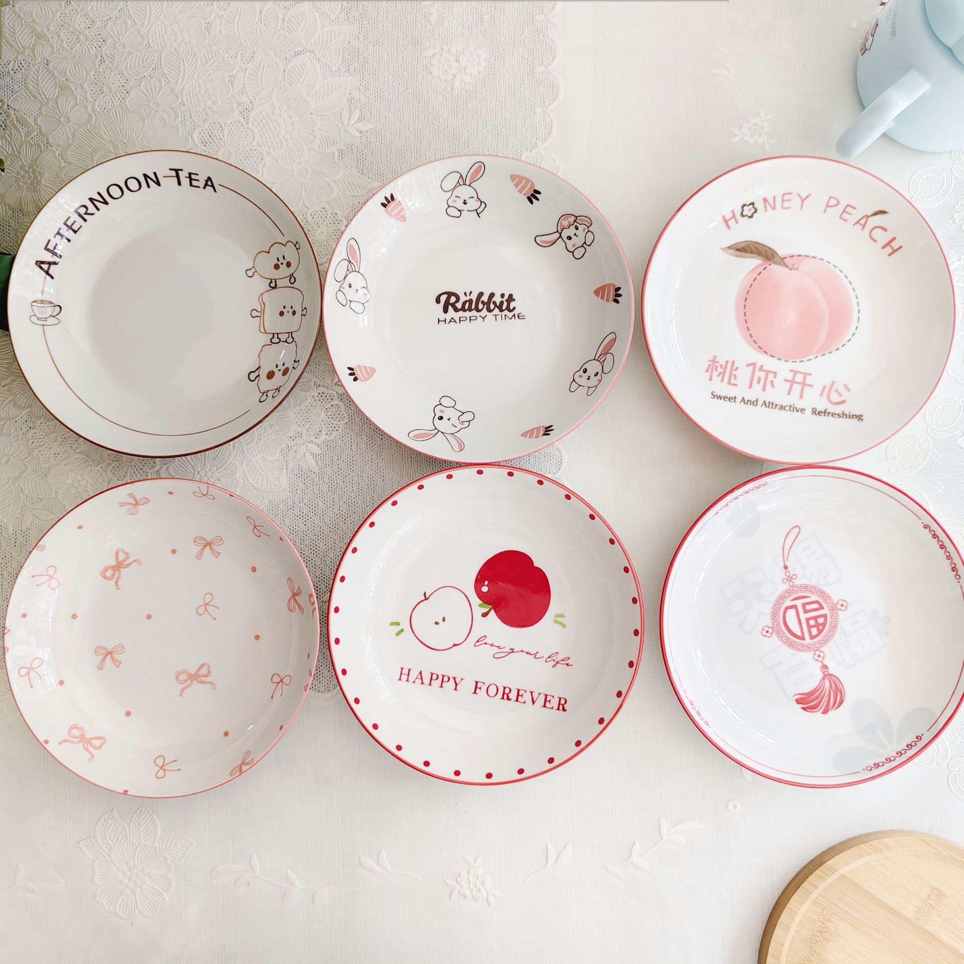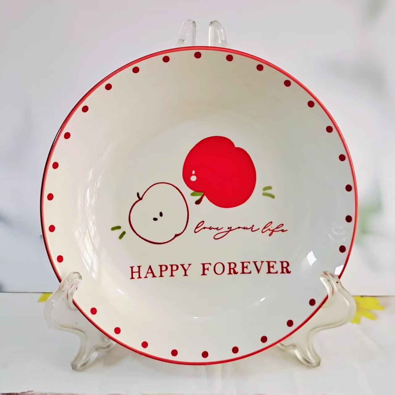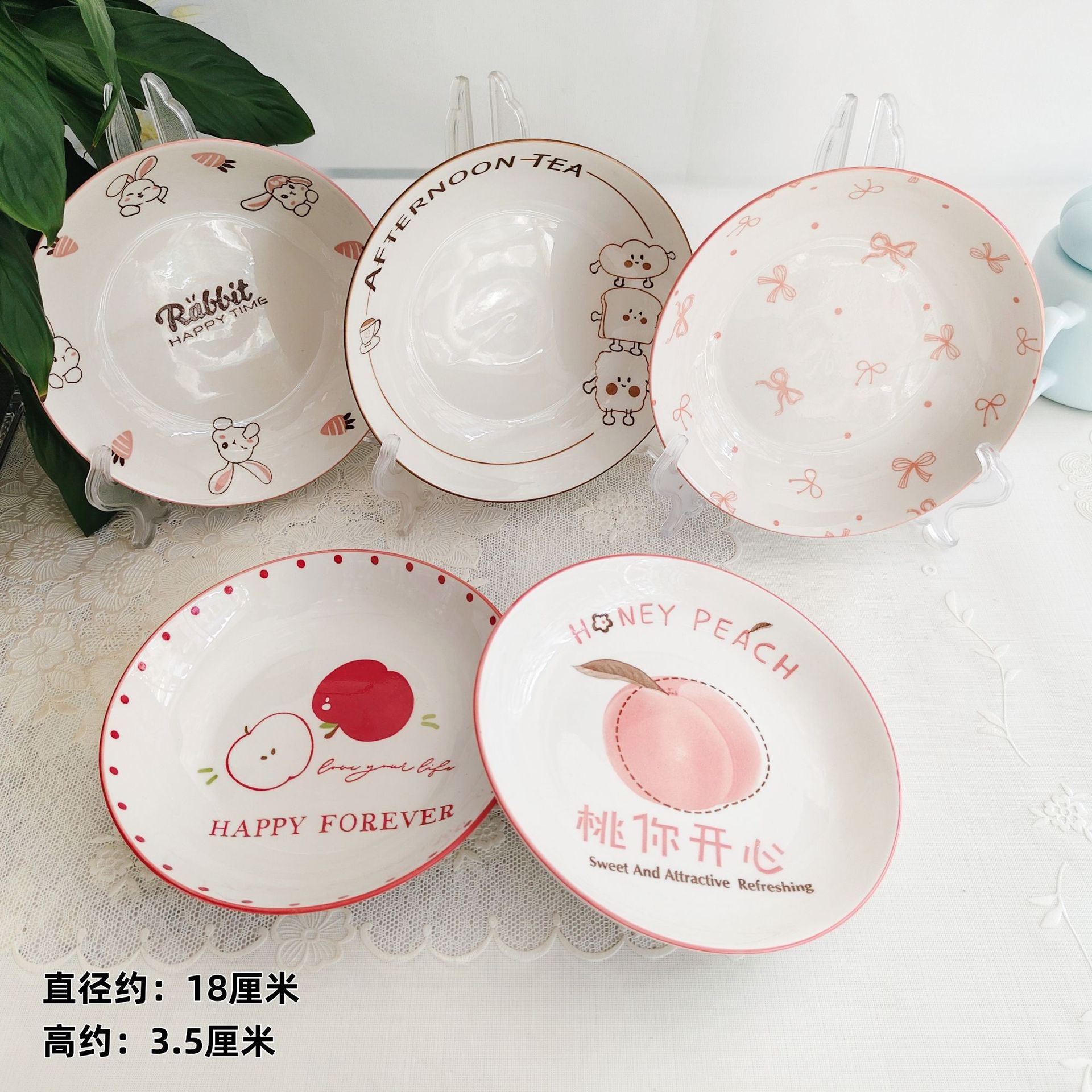 심플하고 창의적인 7inch 도자기 접시, 언더글레이즈 컬러 세라믹 식기, 야채 접시, 밥 접시, 과일 접시, 전자레인지 사용 가능