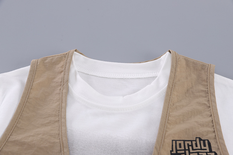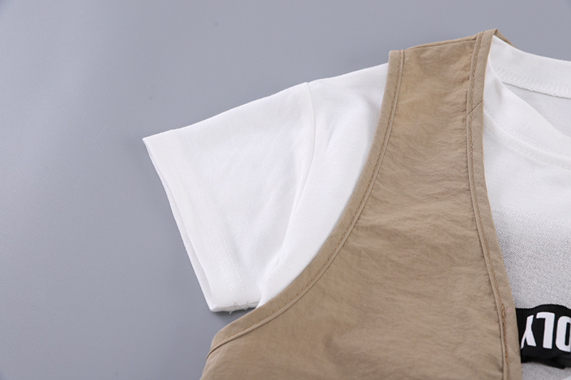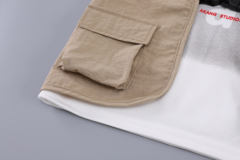 소년 여름 세트 새로운 패션 아기 여름 어린이 얇은 3 차원 더블 포켓 조끼 짧은 소매 3 조각스토어 가기