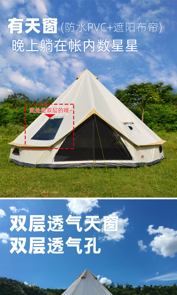 공장 재고 유르트 텐트 야외 캠핑 피라미드 럭셔리 캠핑 방수 인도스토어 가기