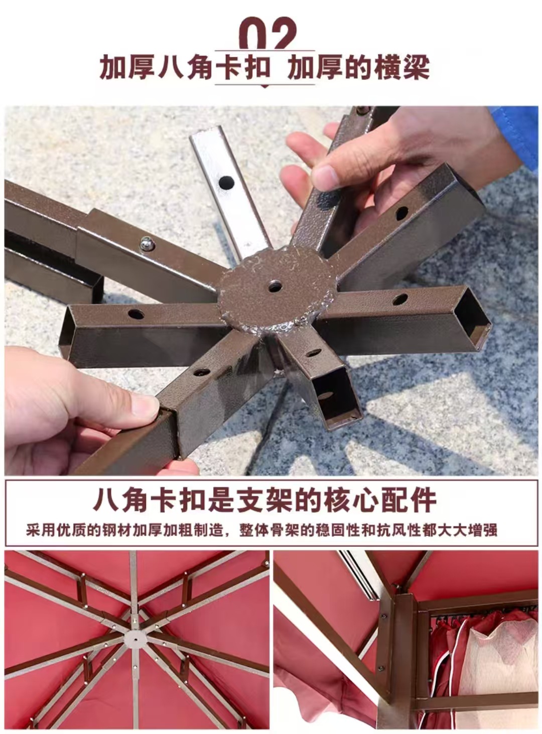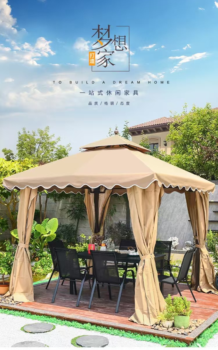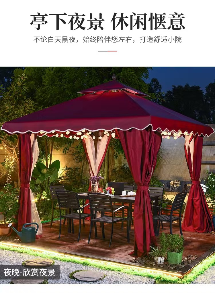 야외 정원 Gazebo Courtyard Four Corners 레저 파빌리온 야외 텐트 임시 활동 전시회 및 판매 음영 4 기둥 파빌리온 전망대
