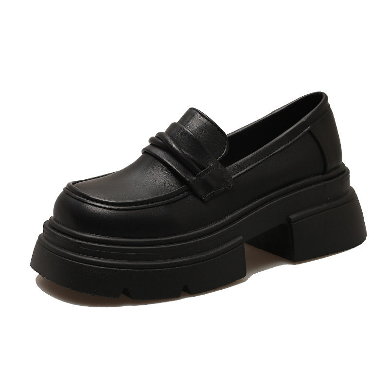 플랫폼 하단 두꺼운 바닥 로퍼 2024 봄과 가을 새로운 슬립 온 블랙 영국 라운드 토 작은 가죽 신발 여성 싱글 레이어 신발스토어 가기