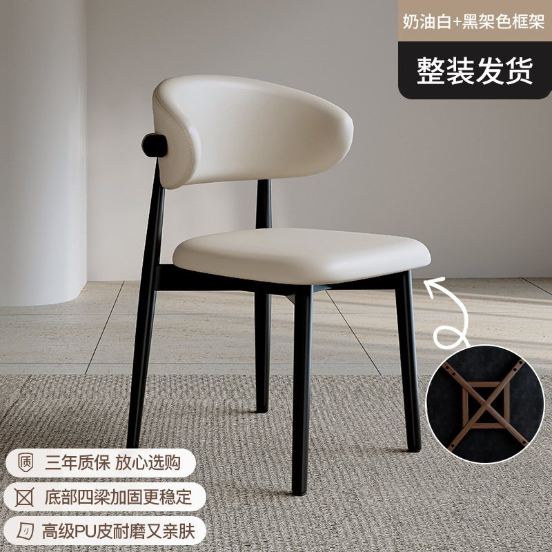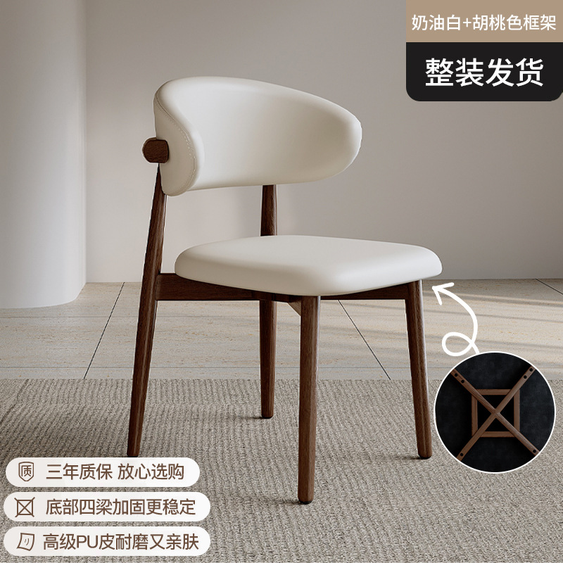 북유럽 솔리드 우드 다이닝 의자 가정용 새로운 크림 스타일 의자 디자이너 간단한 고급 등받이 의자 빛 고급 식탁 및 의자스토어 가기