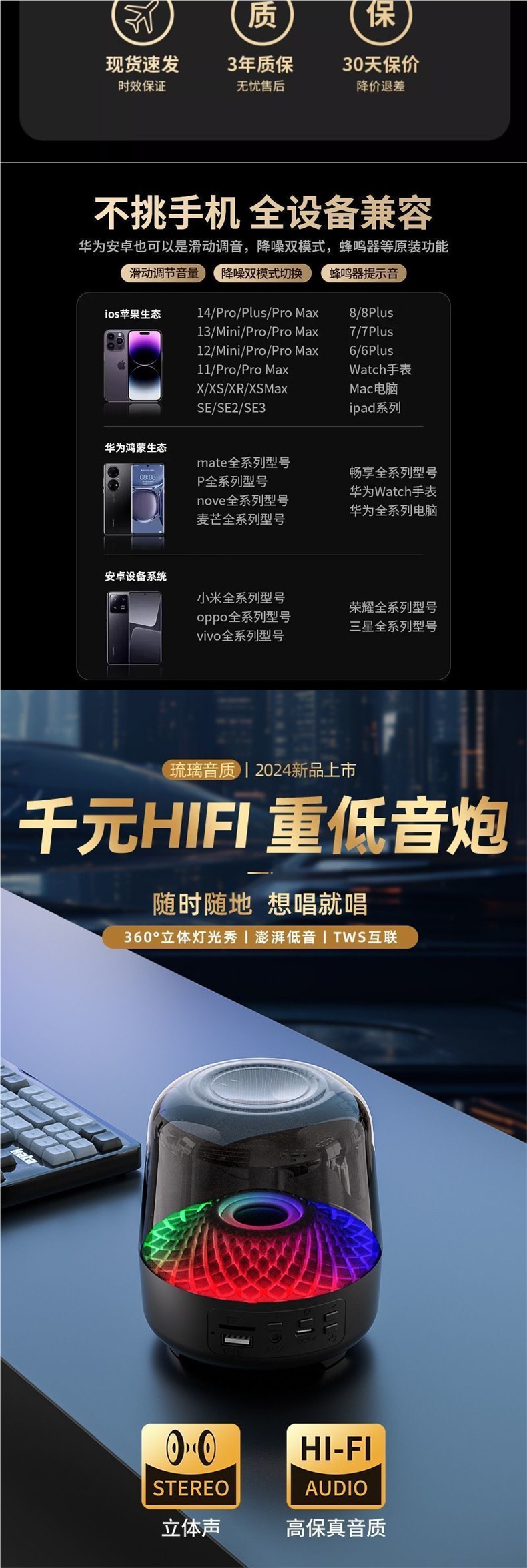 • HiFi 고화질 음질 + 표준 배터리 수명 + 다채로운 조명