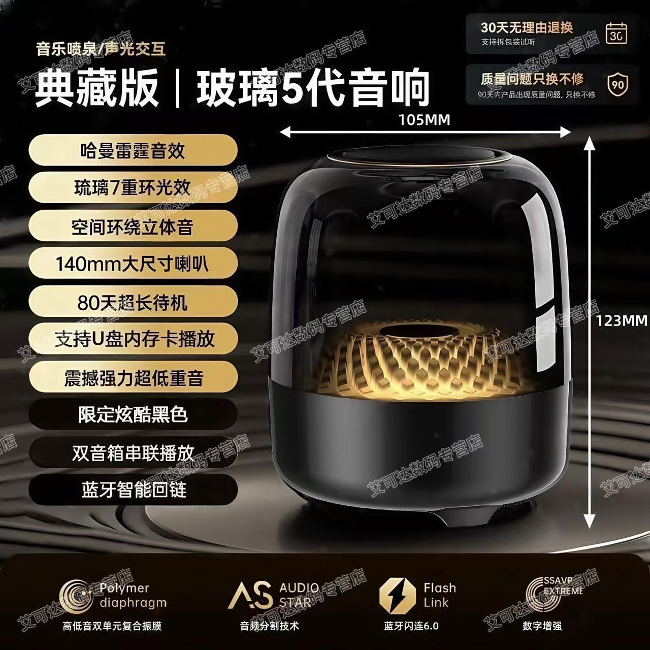 Huaqiang North Top with Harman 동일 스타일 4 세대 유리 무선 블루투스 스피커 홈 컴팩트 서브 우퍼 데스크탑 오디오