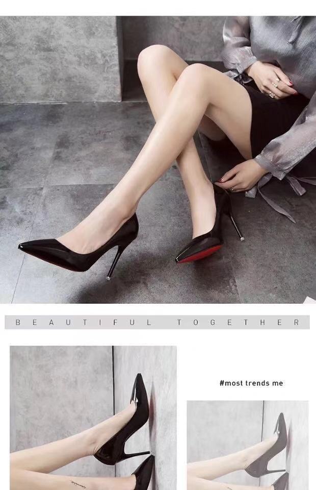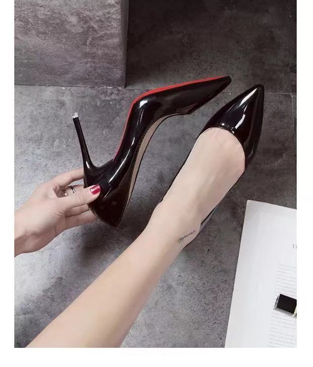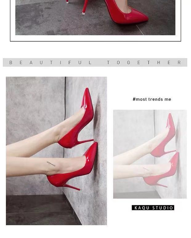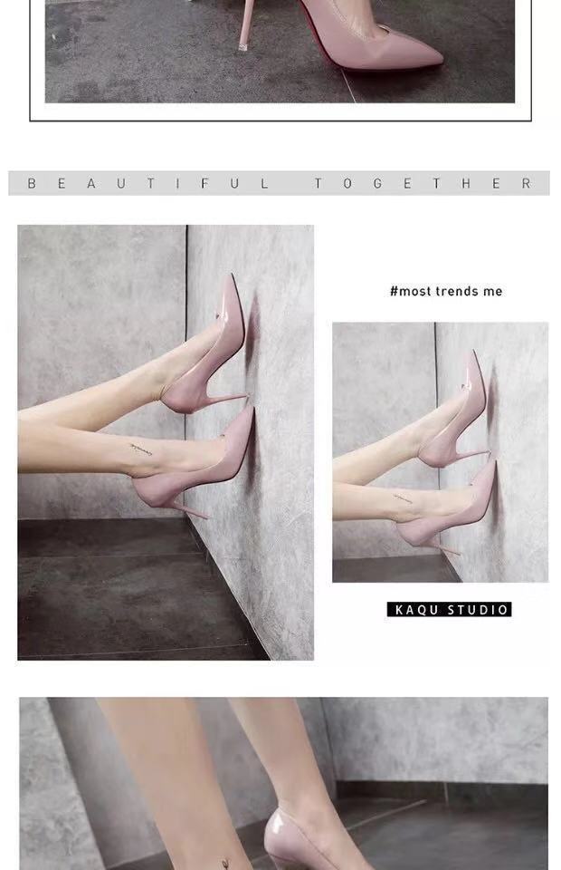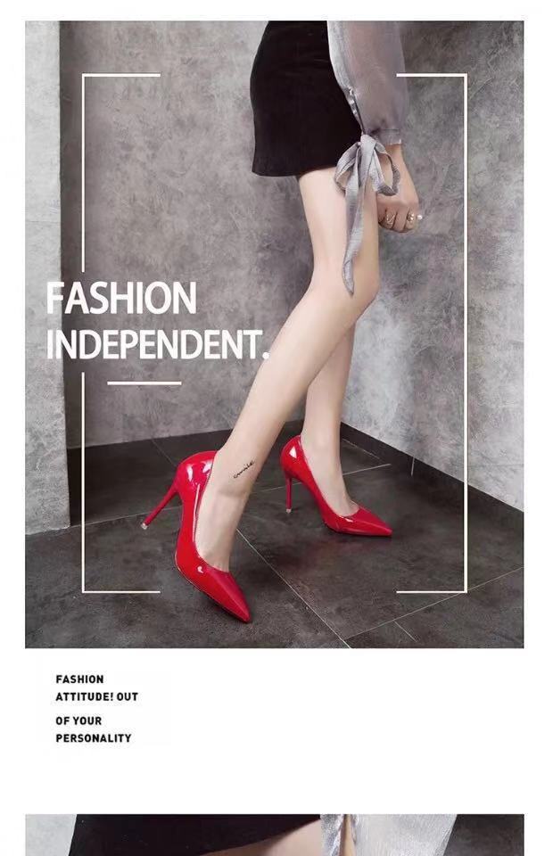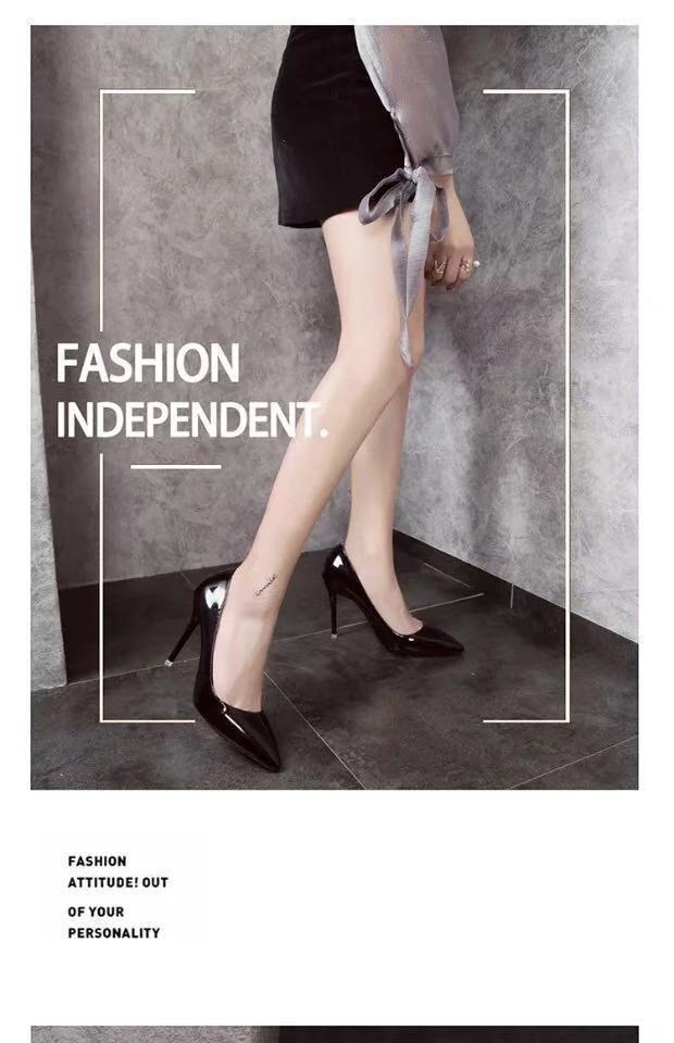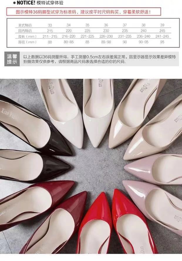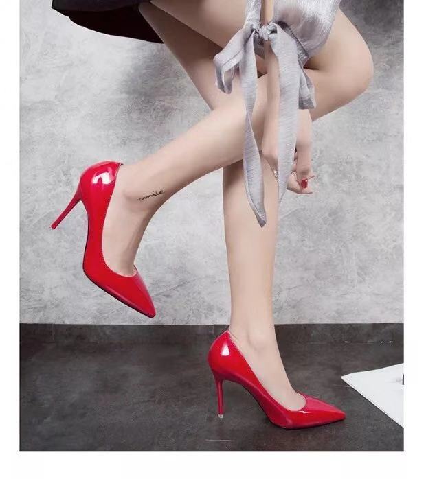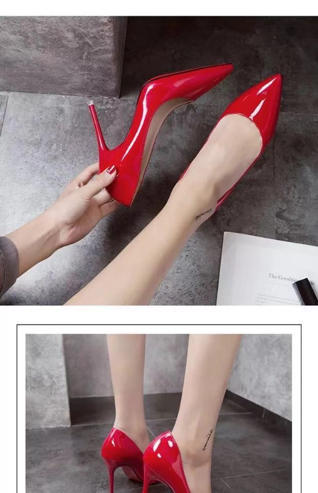 하이힐 스틸레토 힐 침대 신발 여성 봄과 여름 새로운 특허 가죽 반짝이는 센티미터 포인팅 신발스토어 가기