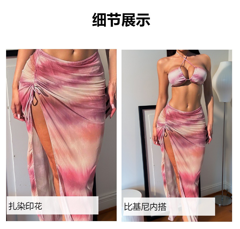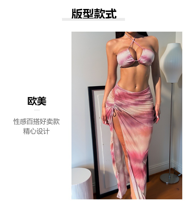 유럽과 미국의 새로운 스타일 비키니 수영복 3피스 세트, 신선하고 순수한 매력의 홀터넥 섹시 크로스보더 비키니 스포츠 스타일