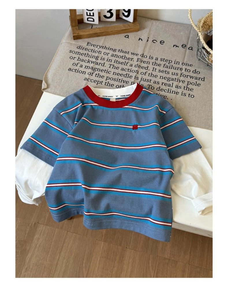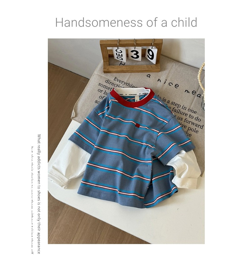 남아용 투피스 스트라이프 긴팔 티셔츠 2026 봄 신상 유아 아동용 패셔너블한 루즈핏 순면 상의