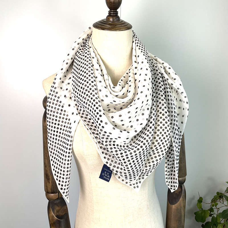 봄과 가을 실크 스카프 헵번 스타일 흑백 웨이브 도트 대형 스퀘어 스카프 올 매치 의류 액세서리 스카프 108 선 스크린 목도리