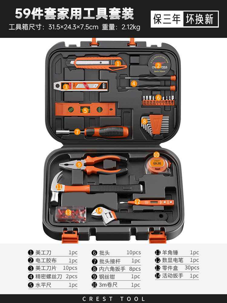 • [크리스탈 다이아몬드 업그레이드 모델] 59-in-1 종합 가정용 유지 관리 도구 상자