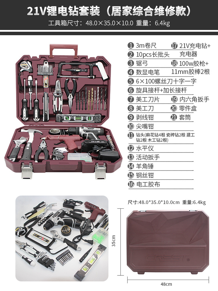 • [크리스탈 다이아몬드 업그레이드 모델] 홈 데코레이션 21V 리튬 전기 드릴 도구 상자