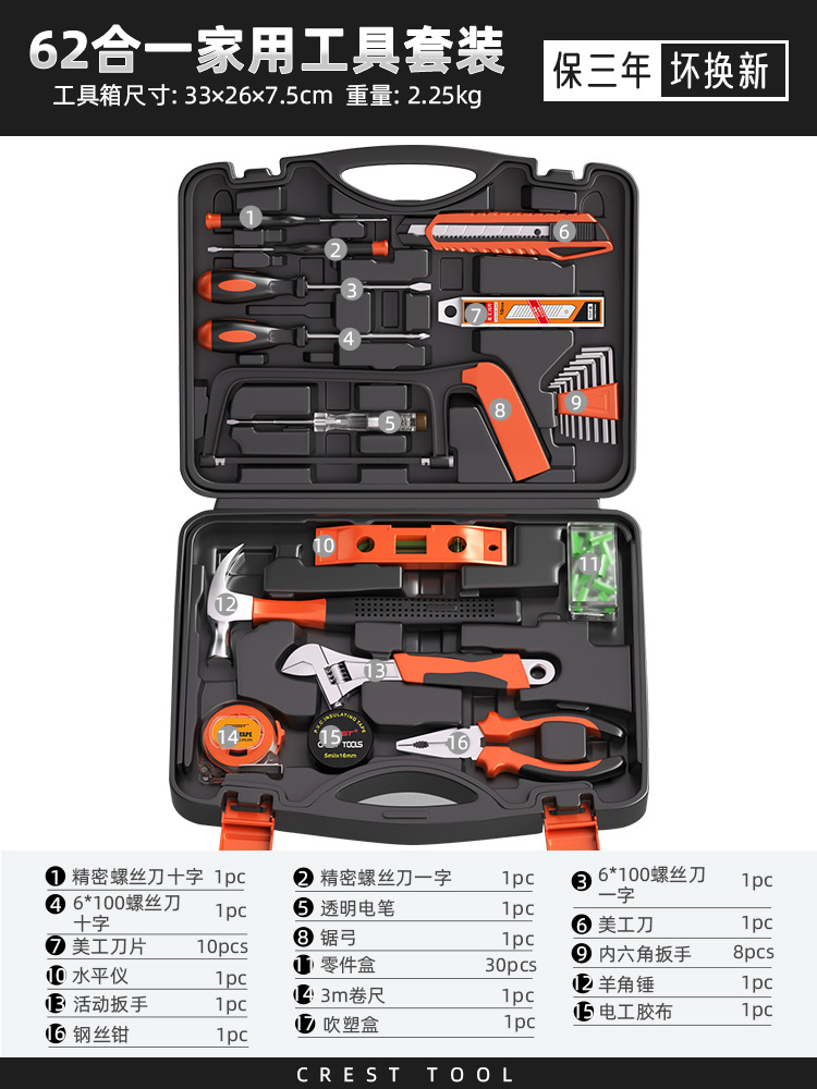 • [크리스탈 다이아몬드 업그레이드 모델] 62-in-1 가정용 도구 상자