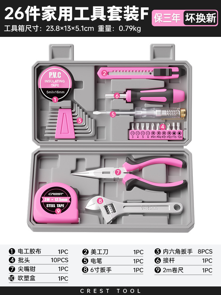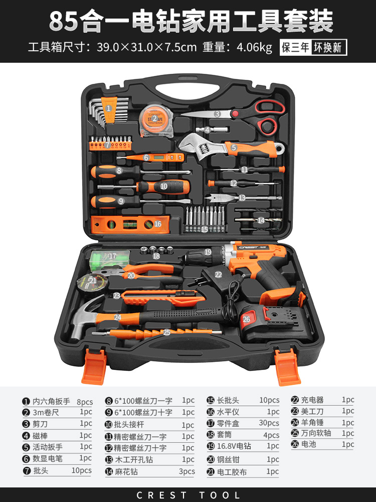• [크리스탈 다이아몬드 업그레이드 모델] 26-in-1 가정용 유지 관리 도구 상자