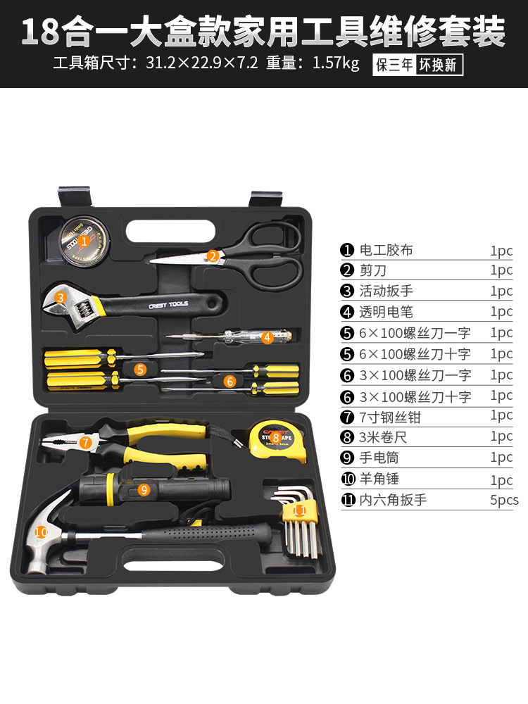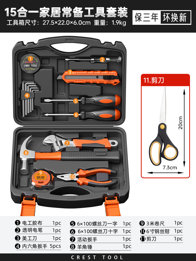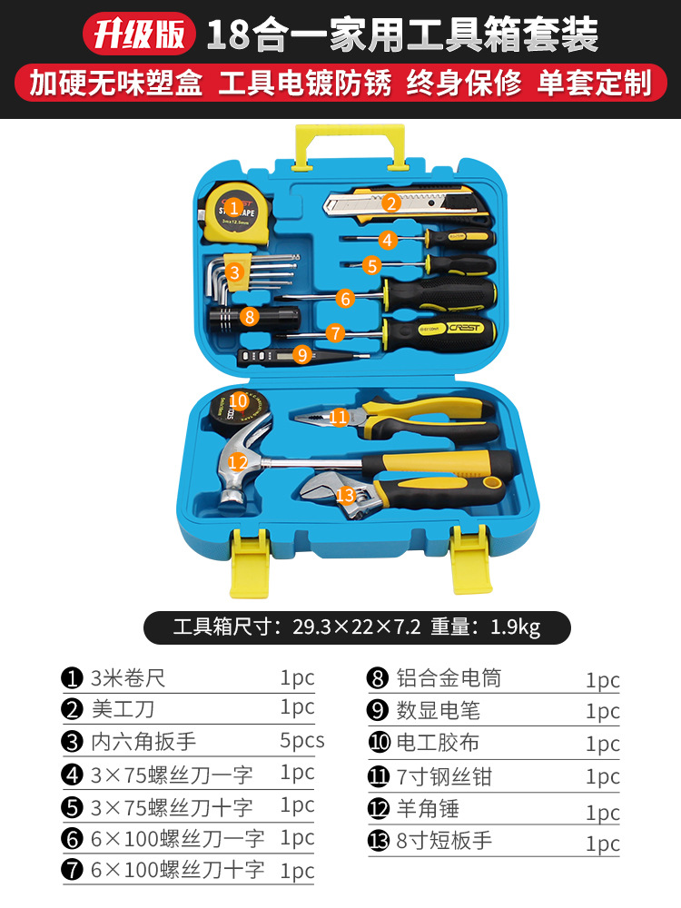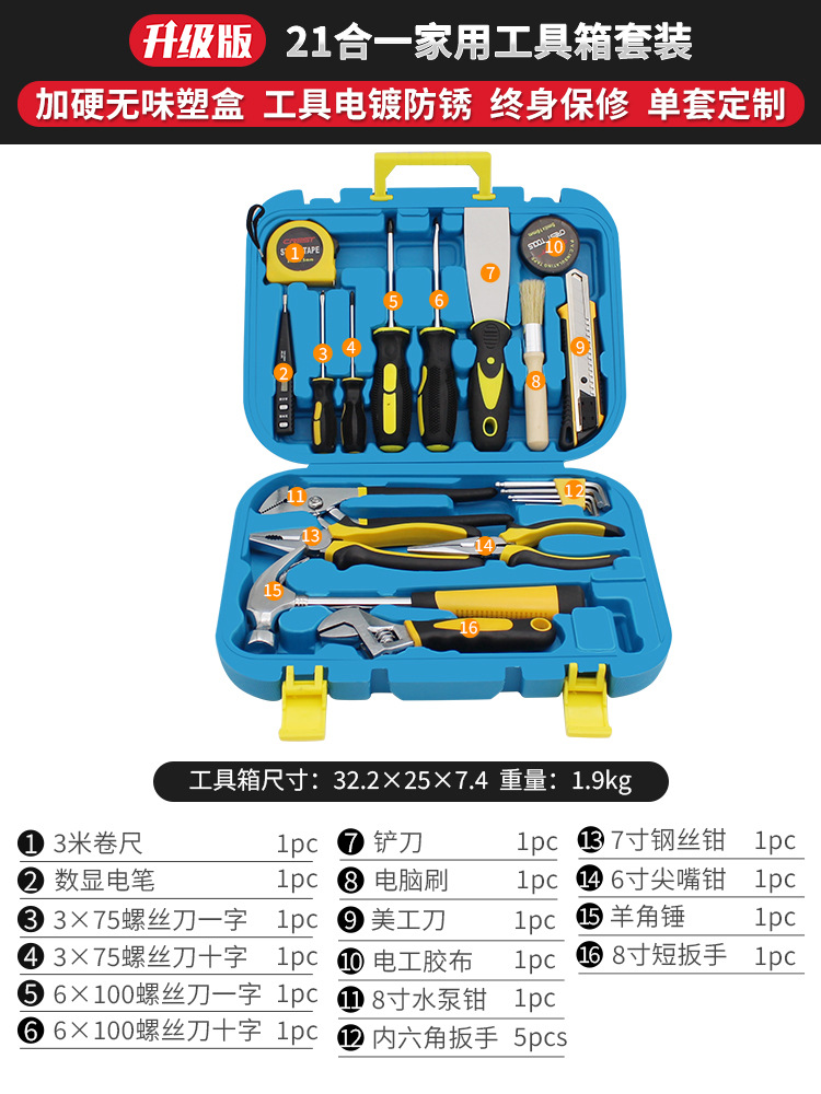 • [크리스탈 다이아몬드 업그레이드 모델] 19-in-1 가정용 도구 상자