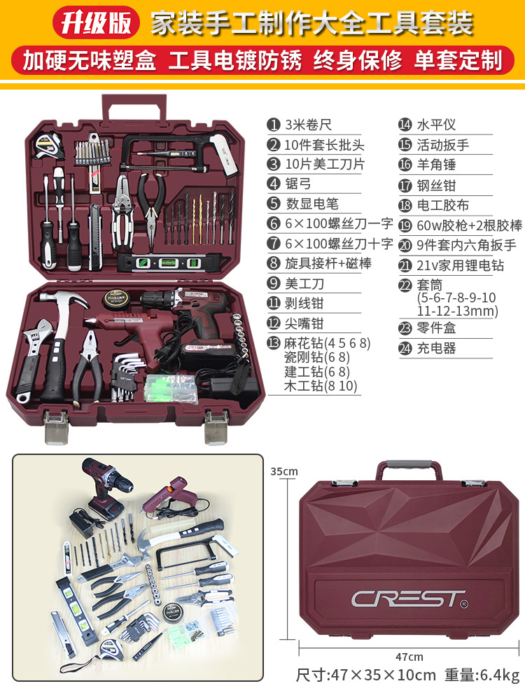 • [크리스탈 다이아몬드 업그레이드 모델] 홈 장식 21V 리튬 업그레이드 전기 드릴 도구 상자