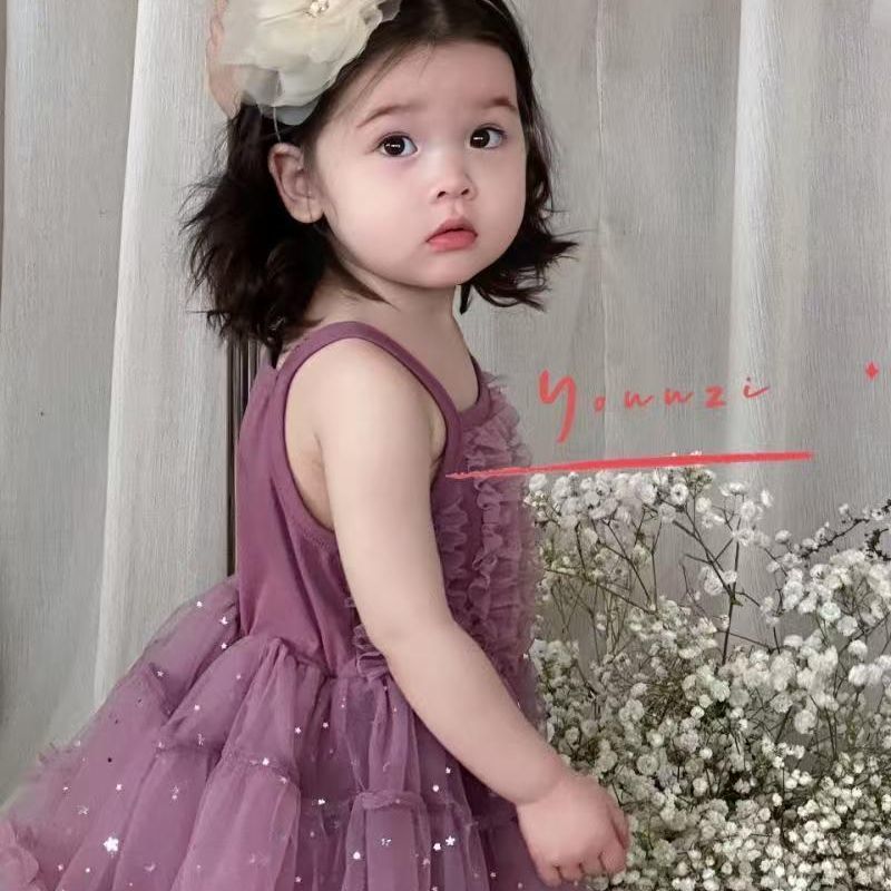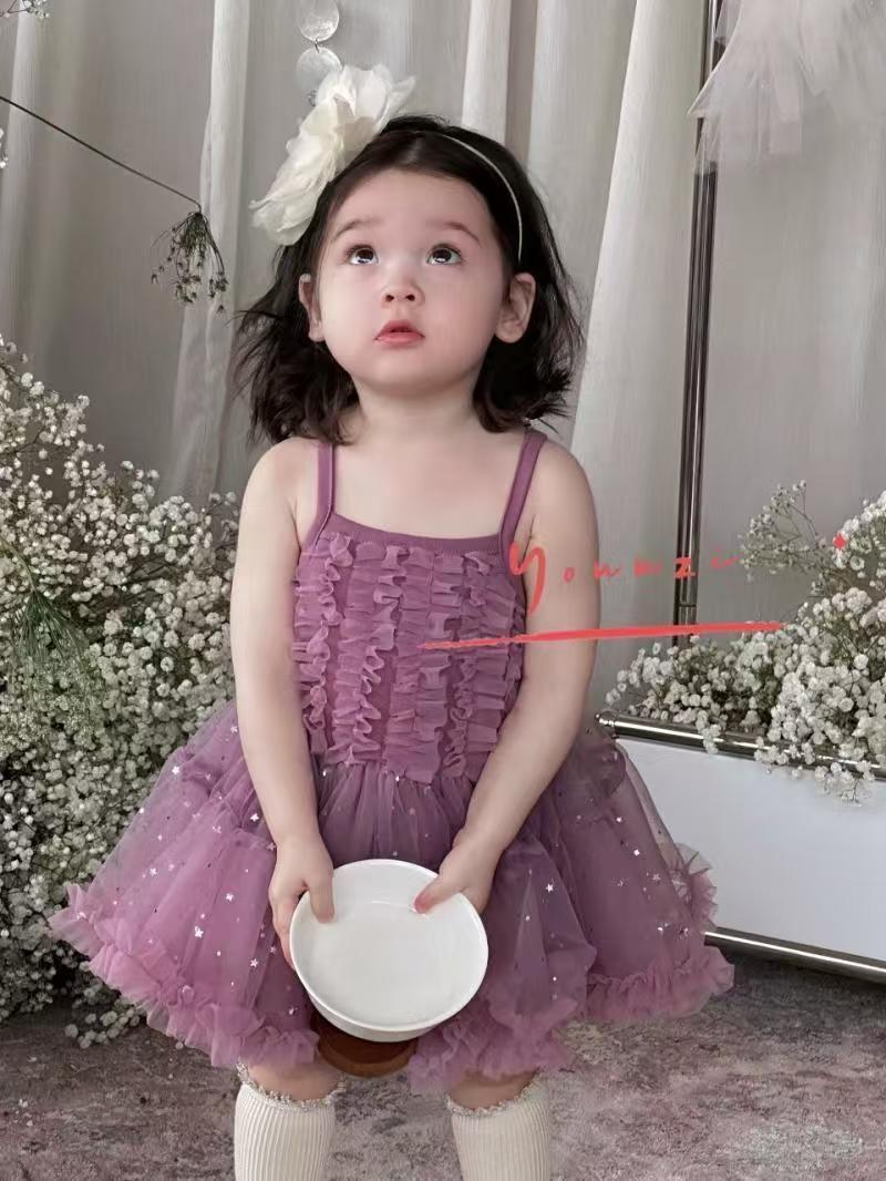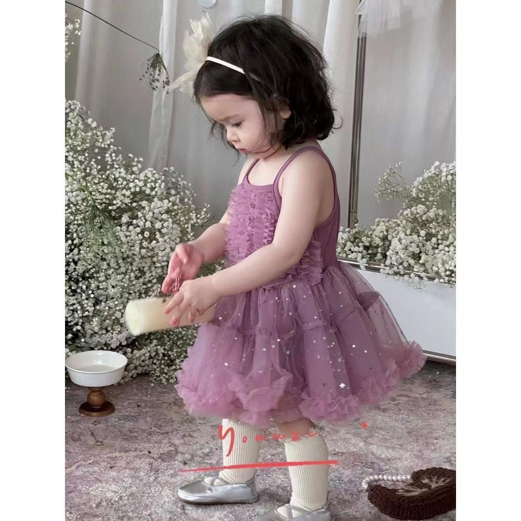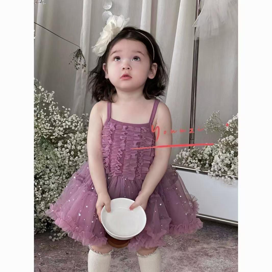 소녀 여름 새 보라색 슬링 원사 원피스 Xiemei 공주 원피스 소녀 유아 한국 스타일 여름 패션