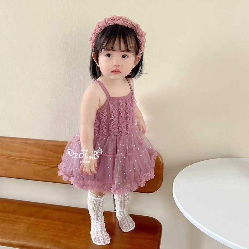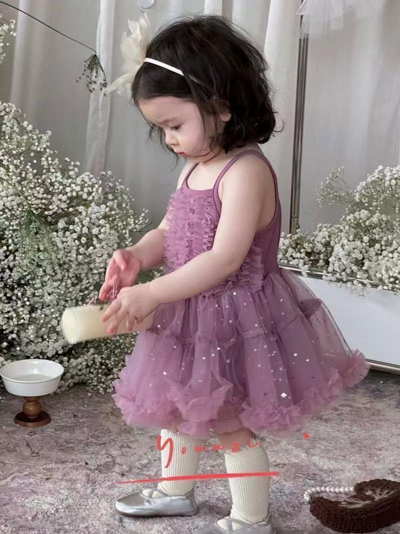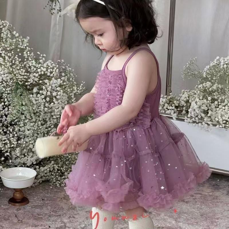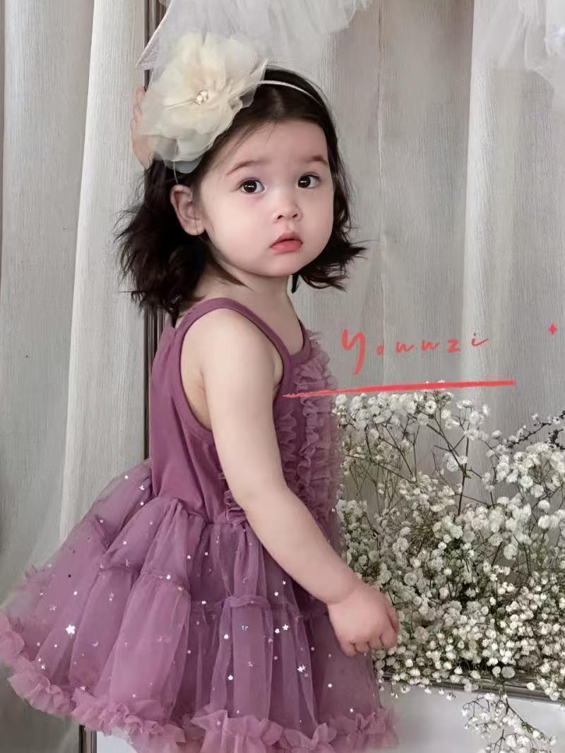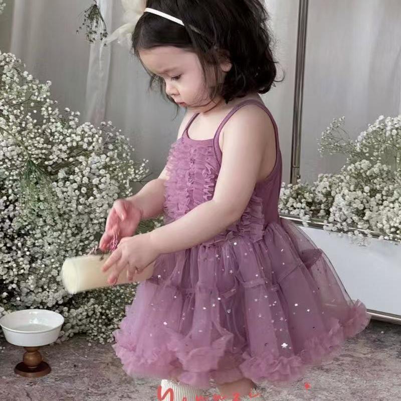 소녀 여름 새 보라색 슬링 원사 원피스 Xiemei 공주 원피스 소녀 유아 한국 스타일 여름 패션